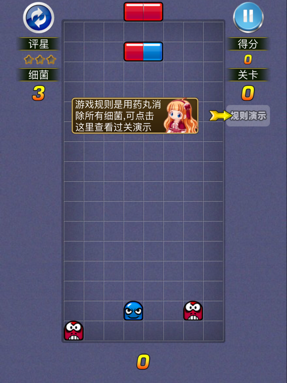 童年风靡全球的经典消除游戏玛丽医生登陆苹果平台! 用你手里的药丸去消灭细菌吧. 当4个相同颜色的药丸或细菌组合在一起时,它们就会一起被消除. 清除掉这一关里所有的细菌就获得胜利. 多种游戏模式可供选择: 1.经典模式:清除掉所有的细菌则过关, 这是最经典的一个模式. 2.挑战模式:需要在规定的药丸内消除所有细菌. 3.本地对战模式:与附近的小伙伴直接进行对战,就像小时候一样! 4.网络对战模式:找不到小伙伴对战?这个模式可以根据您的水平在网络上匹配水平相当的对手进行对战. 另外还有幽灵模式,限时模式,解谜模式,极限模式,镜像模式一共8种游戏模式可供选择. 多达300个关卡等你来挑战! 你还等什么呢,赶快下载一起来回味童年的乐趣吧. 特色: - 原滋原味的小霸王经典游戏,童年的回忆 - 可与网络上的玩家随机匹配对战 - 可与附近的小伙伴进行本地对战 - 8种游戏模式可供选择,300多个关卡等你来挑战! - 同时支持手势操作和虚拟键盘 有任何问题或建议请联系bqd871@126.com修复了一些崩溃bug