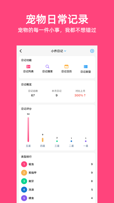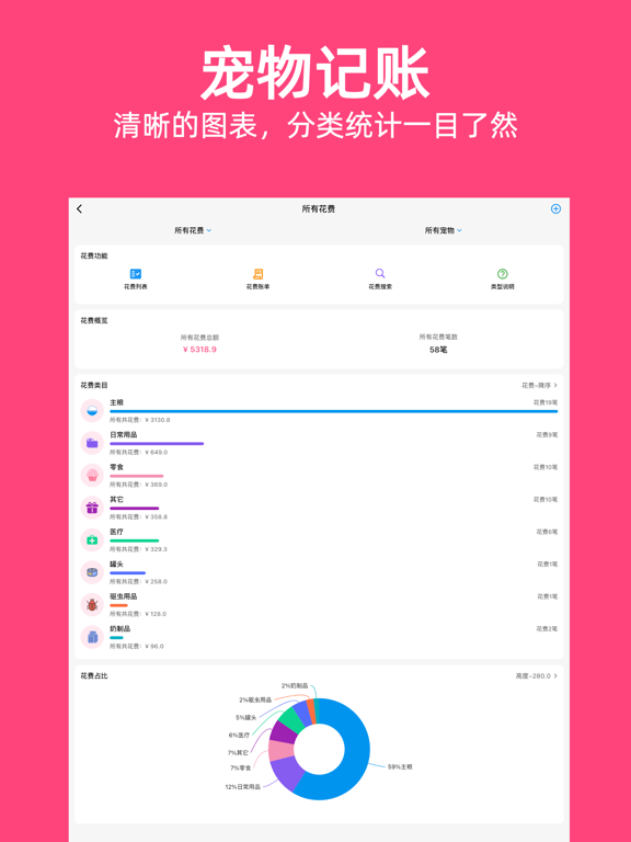 给铲屎官们开发的APP 因为一直找不到一款简单好用的宠物记录的app,所以就跟几个朋友一起开发了这款"铲屎官日记"。 作为开发者的我,本身是一名"猫奴"。 所以在设计这款app时,一直是一个比较纯粹的想法---就是简单好用! 纯粹为了方便自己,希望也可以方便到你们! 功能介绍 关于宠物:首页全部展示宠物基本信息,多宠物管理一目了然,可以很方便查看宠物年龄、陪伴时光、体重、状态、喂食量等基本信息,支持自定义宠物排序。可以生成绝育证书、身份证卡片、日签卡片。离世宠物对应卡片支持置灰处理,非常人性化。 关于宠物记账:记账分类丰富,符合多宠物记账需求。记账柱状图、饼图等图表简洁明了。支持搜索历史账单记录。支持每年、每月、每日、多宠物、多维度下的账单统计。 关于物品管理:物品分类丰富、支持临期物品提醒,再也不用担心物品过期了。可快速出库、入库、归档、更新物品,非常适合做库存管理、过期保质期物品管理清单。 关于日常记录:疫苗、体检、病历、驱虫、洗护、孕育、随手记、大事记、尿便、血糖、心率、血氧、体温、血压、呼吸频率等日常记录需求统统满足,还可以自定义记录类型。支持图文、视频上传。还可以对历史记录进行搜索展示。日历功能可以非常清楚知道每天做了什么事。 关于体重记录:支持宠物体重、体长、体宽、肩高记录。体重、体长、体宽、肩高图表可以很清楚的知道宠物的体重、体长、肩高变化趋势。此外,我们还提供了成年宠物的标准体重参考。 关于宠物食谱:熟自制、生骨肉、自制猫饭、自制狗饭、食谱库存、食谱账单、价格管理,如果你喜欢给宠物做饭,那么这些功能你肯定不可以错过哦。宠物食物禁忌--看看哪些食物是不可以给宠物吃的。喂食量计算--如果不知道每天给宠物喂多少,那么来这里计算一下吧。 关于兽药综合查询:如果你想查看你的兽药产品信息,那么这项功能肯定适合你。你只需要扫一扫兽药产品二维码,即可获得该产品的相关信息。 关于共享账号:支持邀请多位好友一起养你的宠物,快来邀请朋友一起养宠物吧 此外,我们还有提醒、宠物社区、宠物问答、宠物喂食记录、宠物商品优惠券、宠物食物营养成分分析等功能,欢迎您到来体验!更多内容正在努力开发中,敬请期待哦,喜欢的话,记得分享APP给朋友哦,给个好评哦~拆家捣蛋是天赋 但一个无辜眼神 就能让你全部原谅 本次更新 修复已知的bug