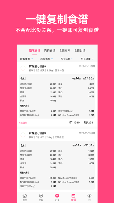 铲屎官日记-宠物日常记录工具&猫狗食谱熟自制