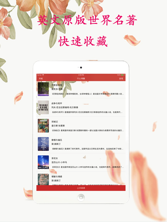 Books are the food for the hungry of great mind. Classics are books which people praise and dying to read. Congratulations! this is exactly what our app serves you. You can grab any of the authentic English classics for FREE! Do not hesitate, let get started. 书籍是伟大者饥饿的粮食,经典更是有口皆碑,人人争先阅读!如果你在寻找经典名著,恭喜你,这正是我们向您提供的服务!在这里你能找到任何你想读的经典,而且免费!还在等什么,赶快开始阅读吧!若干问题的改进。