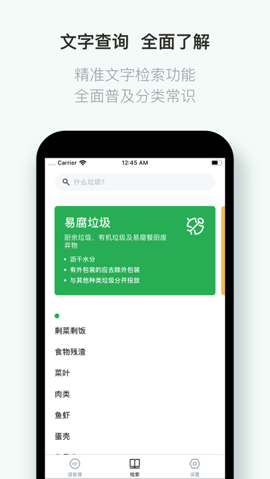 # 获得推荐 App Store 首页「时下热门」推荐 App Store 应用「新鲜 App」推荐 PriceTag、 AppSo、果核 Group、少数派编辑推荐 China Daily、新闻晨报、上海电视台新闻坊等媒体报道 # 应用亮点 为了让垃圾分类不再枯燥与繁琐,我们匠心打造了一款精美的垃圾分类工具。「什么垃圾」凭借高效语音输入、全面分类数据库以及前瞻性交互设计,让你轻松应对分类难题。 「语音搜索」 借助强大的语音识别功能,只需要说出垃圾名称,就能立即知道如何分类。 「分类检索」 提供准确可靠的文本搜索以及数据齐全的检索列表,实现全方位的信息查询。 「视觉强化」 采用美观的卡片作为互动载体,配合分类颜色,形成基于视觉的分类习惯。 这是一款处于发育期的产品,我们将持续丰富垃圾数据库,优化体验,同时也欢迎你帮助我们改善产品。 # 联系我们 微博:@zzz_studio 邮箱:contactzzz@yeah.net- 优化了新系统的兼容性。
