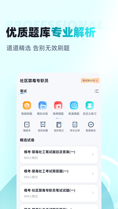 社区禁毒专员考试聚题库——专业备考助手 高效攻克禁毒岗位招聘 面向社区工作者、社工机构人员、基层民警,备战社区禁毒专职人员招聘笔试。深度整合《禁毒法》《戒毒条例》核心考点及各地真题,提供真题实战、精准练习、智能纠错一体化方案,助您系统掌握禁毒专业知识,成功上岗。 核心功能特色: 真题模拟考试 收录全国重点城市社区禁毒专员招聘真题及权威预测卷,覆盖政策法规、实务操作、案例分析三大题型。全真模拟笔试场景: 政策法规题(毒品犯罪量刑标准) 实务操作题(吸毒人员建档流程) 案例分析题(复吸干预方案设计) 考后生成智能诊断报告:标注薄弱模块(如法律条款得分率)、高频错误类型(如社戒社康程序混淆)、能力短板(如干预策略有效性)。 系统知识点练习 科学分类五大知识体系: 法律法规:《禁毒法》《戒毒条例》《治安管理处罚法》核心条款。 毒品认知:传统与新型毒品特性、成瘾机制、危害识别。 工作规范:吸毒人员动态管控、社戒社康执行流程、风险分类评估。 干预技能:谈心谈话技巧、家庭支持系统构建、就业帮扶资源对接。 预防宣传:青少年毒品预防教育、社区宣传活动策划、新媒体宣教策略。 支持按高频考点(如社戒决定执行主体)、易错点(如强制隔离戒毒适用条件)、重难点(如复吸高危情境应对)专项训练。 智能错题本 自动归集所有练习错题,按风险等级(法律误读/操作失范)智能分类。每题附带深度解析: 法律依据(《禁毒法》第38条原文) 实务标准(建档资料清单规范) 案例警示(违反保密规定后果) 支持错题重练、关联法条推送,重点攻克禁毒执法与帮扶薄弱环节。 核心优势 权威精准:依据国家禁毒办《社区戒毒社区康复工作指南》及最新地方招聘大纲 高效闭环:真题检验能力→错题聚焦风险点→练习强化规范记忆 实务导向:解析直连吸毒人员管控、宣教活动策划等真实场景 适用人群:街道禁毒社工、社区网格员、司法所戒毒干部、公益组织从业者。立即下载《社区禁毒专员考试聚题库》,筑牢专业根基,助力创建无毒社区!优化已知问题 更新最新题库