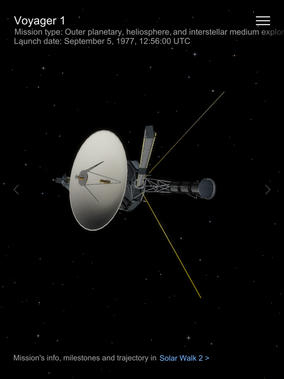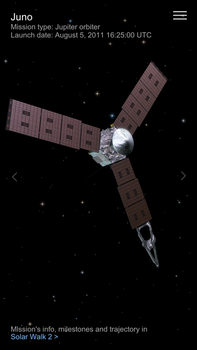 Solar Walk™ 2开发的空间博物馆拥有在空间探索中进行的最有意义的任务。人类使用航天器开展了很多设计、发射和科研工作。Solar Walk™ 2的空间博物馆展现历史上最伟大的任务。 如果你想要了解更多有关任务的信息,请点按屏幕底部的链接,直接置身Solar Walk™ 2应用中的任务,你可以阅读关于该任务的详细信息,在活动日历中查看重要事件 ,返回到发射日期并查看其飞行轨道。你也可缩小,查看该任务在太阳系中的位置。如果在更大的电视屏幕上打开应用,眼前的一切将让你惊叹不已。 请注意空间博物馆仅包括少数任务,Solar Walk™ 2应用中提供完整的任务列表。● General bug fixes and performance improvements. If you have any questions or problems with the app, do not hesitate to contact us at support@vitotechnology.com.
