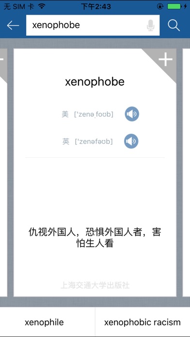 时代性很强的专业英汉法律词典,《英汉双向法律词典》2001年11月第1版发行,手机版与2011年2月第2版同步。内容涵盖了法学的各个领域,但对国际金融贸易类又有所侧重,同时,又及时吸收了大量新词汇,还吸收了一般法律词典没有吸收的词汇,如法律文献中经常使用的拉丁语词汇,共收词条近5万条。海词词典(中国第一个在线词典dict.cn)携手上海交通大学出版社官方权威正版发布,具备手机上最便捷的查词功能(摄像头查词、语音查词、通知栏快捷查词等),还有清晰发音、生词收藏、生词辅助记忆等学习功能。选择高品质词典和词汇手册,学习更有保障!(版权所有,盗版必究) 包含应用内购买,购买后畅享正版内容,无每日使用次数限制。 【软件特色】 (1)权威正版:本手册是上海交通大学出版社发行的本行业最权威词典。 (2)专业精选:收录法律专业词汇50000余条。 (3)快捷查词:支持多种查词方式“摄像头查词、语音查词、通知栏快捷查词”等。 (4)英/美发音:与书籍相比,增加了多媒体英式和美式发音,所有单词皆可发音。 (5)离线查询:下载安装离线包后,在无网络情况下,一样可以查词、发音,无需GPRS流量。 (6)云生词本:采用云端同步技术,为用户提供生词同步学习服务,可以随时随地收藏和复习生词。 (7)背单词:软件具有生词复习计划制定功能,以及根据艾宾浩斯记忆曲线自动提醒背诵功能,快速轻松掌握行业词汇。修复了部分设备上的一些体验问题