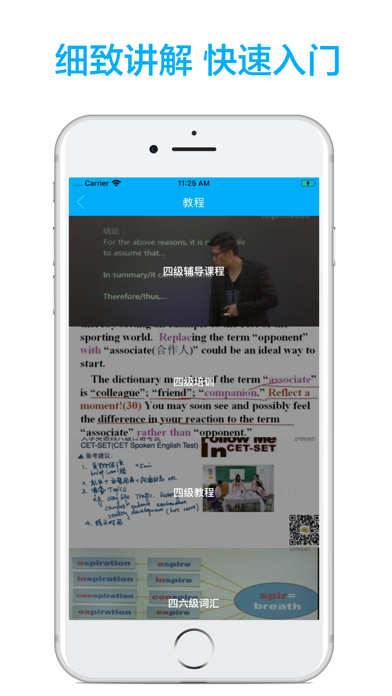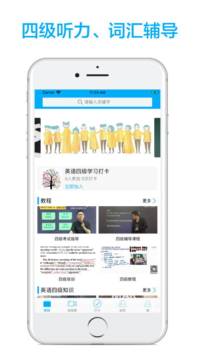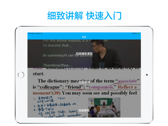 【精品四级考试辅导】 【四级考试必备应用】 精选四级考试辅导教程 • 四级基础培训 • 四级考试词汇 • 四级考试知识点 • 四级辅导课程 • 听力冲刺课程 • 最新四级考试专项辅导 赶紧下载使用吧!适配 iOS17 修改bug