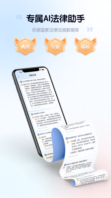 AI法律助手提供专业、高效、便捷、私密的法律咨询服务,为有法律咨询需求的您提供更普惠、更便捷的法律咨询服务。 - 专业:AI法律助手可以为您提供多种法律服务场景的咨询,涵盖离婚纠纷、劳动纠纷、房产纠纷等方面; - 高效:AI法律助手经过大量案例训练,可以快速提供各方面的参考; - 便捷:用户不需要预约专业律师,AI法律助手可以随时随地解答法律问题; - 私密:全程与AI法律助手沟通,百分百保护用户隐私; 无论您是法律专业人士还是寻求法律指导的普通人,都可以享受到AI法律助手提供的法律咨询服务。 「免责声明」 AI模型发出的信息是由语言模型推理生成,可能是虚构的,请您自行辨别是非。 本应用仅提供法律法规咨询建议,不代表专业的法律法规服务。本应用的信息及服务应仅供参考,不构成专业建议和法律依据,我们不承担由使用本应用而产生的任何责任。 「VIP会员自动订阅服务说明」 • 订阅服务: a) VIP会员连续包月(1个月) c) VIP会员连续包年(12个月) •具体订阅价格请参考应用内订阅页。 • 付款:用户确认购买并付款后记入 iTunes 账户 • 续费:购买连续包月的会员账号,苹果 iTunes 会在到期前24小时内扣费,扣费成功后订阅周期顺延。 • 取消续订:如需取消续订, 请在当前订阅到期24小时以前, 手动再 iTunes / Apple ID 设置管理中关闭自动续订功能,选择对应的订阅项取消即可。 • 自动续订: 苹果 iTunes 账户会在到期前24小时内扣款, 扣款成功后订阅周期顺延一个订阅周期。 EULA: 用户协议: https://terms.particlethink.com/AI法律助手-用户协议.html 隐私政策: https://terms.particlethink.com/AI法律助手-隐私政策.html- 修复部分页面无法访问的问题 - 其他已知问题修复