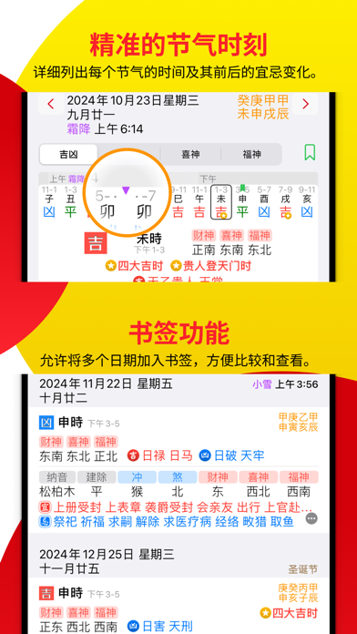 我们推出的2024年版《通胜》,在坚持过往精准与权威的基础上,进一步优化了用户体验。这不仅是一款应用工具,更是您日常生活中不可或缺的玄学参考,助您轻松趋吉避凶。软件依据钦定《协纪辨方书》的内容,真正将传统《通胜》数码化,提供每日的吉凶神煞、十二建除、彭祖百忌等择日资料。 • 完整2024资料库:软件提供由2023年12月至2025年2月的宜忌资料,完整涵盖2025整年度。 • 专业通书内容:每日精确提供宜忌及时辰吉凶资讯,让您在择日过程中更加得心应手。 • 冲煞、生肖及方位指南:每日详细显示冲煞、生肖、财神、喜神、福神的方位,助您规划每日活动。 • 吉凶神煞与纳音五行:提供每日的吉凶神煞和纳音五行,轻松掌握每日运势。 • 胎神所占位置:详细提供每日胎神方位,帮助您在选择适宜活动时更加安心。 • 彭祖百忌:每日准确显示彭祖百忌,避免不利活动。 • 精准的节气时刻:详细列出每个节气的时间及其前后的宜忌变化。 • 书签功能:允许将多个日期加入书签,方便比较和查看。 • 公众假期显示:支持中国、香港、台湾、新加坡的公众假期资讯,帮助您更有效选择吉日。 所有这些资料均依据钦定《协纪辨方书》,确保内容的权威性与准确性,助您在生活中趋吉避凶。 - 不同版本通胜之差异, 坊间所流通之通胜, 所有都依据 钦定《协纪辨方书》, 再在其基础上作出修改, 以特显门派之不同。例如在 香港、台湾, 流通之通胜有10多个版本, 资料各有差异。而本程式所载之资料, 是依据 钦定《协纪辨方书》上的资料,再作计算, 确保准确。 - 玄学非精密科学, 欢迎作为趋吉避凶的参考。 - 每个用户的意见我们都非常重视。如用户想尽快得到我们的回覆,可直接电邮(hello@firm13.com)给我们。修复咗小程序喺 iOS 26 上嘅错误,提升稳定性同流畅度。