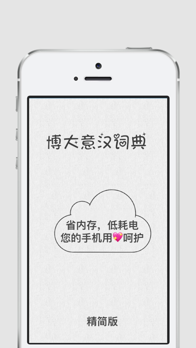 博大意汉词典,自带词库(包括动词变位), 无需手动安装。 设计朴素简洁,精简实用, 省内存,低耗电,为您手机多一份呵护 (应用仅占50MB左右的空间)。 遇到问题请微博@heartnest,或登陆yihan.it联系我们,有问必答。Apple 已更新此 App 以显示 Apple Watch App 图标。 Minor, 微调