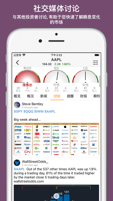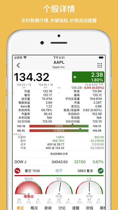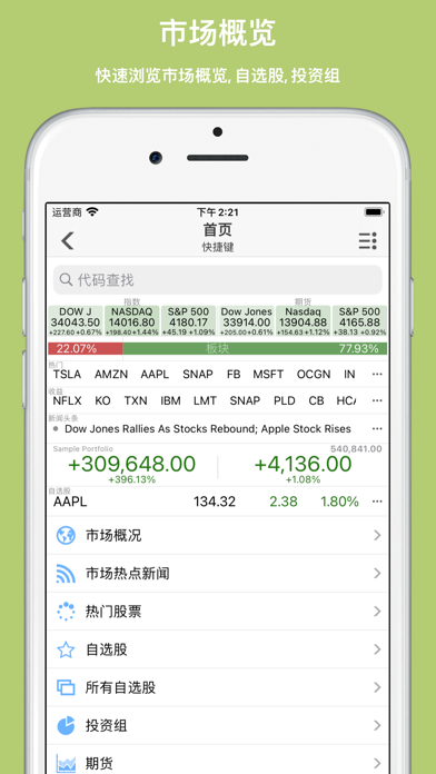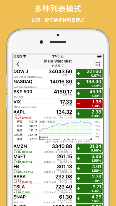 美股通旨在为您带来简化的移动股票市场体验。无论您是新手股票用户,图表管理员还是当日交易者,美股通都是您不可或缺的有力工具。它具有从实时股票报价,盘前/盘后交易到可定制的高级图表的所有内容。通过高度可定制的操作界面,您可以访问有关股票期权,商业新闻,市场新闻流,外汇,ETF,商品和股票期货的信息。它将迅速成为您最终的投资跟踪工具和交易平台! === 实时美股数据 实时美股数据,盘前交易 盘后交易 股指期货 === 市场概览 快速浏览市场概览, 自选股, 投资组 === 个股详情 实时数据行情, 关键指标, 价格波动提醒 === 投资组管理 实时追踪您的投资组, 可视化投资组盈亏, 分布与分析 === 美股筛选 根据您自定义参数寻找潜力股 === 模拟交易 实时数据模拟交易 === 高级自定义提醒 MACD, RSI, Stochastic, CCI 看涨/看跌 提醒 === 个股比较 个股比较, 图表, 细节 === 后验分析 强大的后验分析助力您寻找最有效的技术指标 === 多种列表模式 快速一键切换多种列表模式 === 热图模式 可视化热图模式有助于您快速了解市场热点 === 社交媒体讨论 与其他投资者讨论, 有助于您快速了解瞬息变化的市场 === 交互式的高级图表 交互式的高级图表有助于您技术分析, 看涨/看跌模式识别 === Premium Subscriptions: - No Ads, all features enabled – Payment will be charged to iTunes Account at confirmation of purchase – Subscription automatically renews unless auto-renew is turned off at least 24-hours before the end of the current period – Account will be charged for renewal within 24-hours prior to the end of the current period, and identify the cost of the renewal – Subscriptions may be managed by the user and auto-renewal may be turned off by going to the user's Account Settings after purchase – Privacy policy: https://www.astontek.com/privacy.html – Terms of Use: https://www.apple.com/legal/internet-services/itunes/dev/stdeula/Bug fixes and performance improvements
