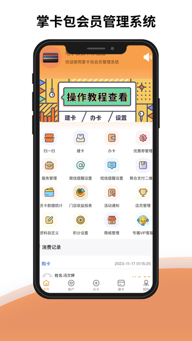 【应用介绍】 掌卡包是一款实体行业商家必备的会员管理营销系统,提供会员管理,财务管理,营销管理,拓客,锁客,提高复购率样样俱全。 系统稳定,易上手,操作简单明了,有效地降低了商家的经营成本,以及提高了工作效率。 【核心功能】 1.快速建卡,快速办卡开卡,快速充值店家一键操作 2.店员管理,店主可以添加N个店员帮您管理店铺 3.积分功能,消费反积分,积分可以兑换产品,快速提高门店复购率 4.分店功能,一卡互通消费,A店卡可以去B店消费 数据独立统计 5.微信卡包会员卡都储存在会员自己的微信里面 6.消费通知,会员每笔消费都会收到消费提醒,商家也能收到会员消费的提醒通知 7.手机,电脑,平板,三端可同步操作 8.数据随时随地导出 9.线上商城功能,积分商城功能 官方电话:400-654-0731新增免单功能 优化消费账单
