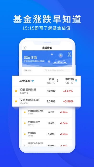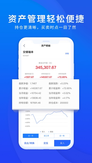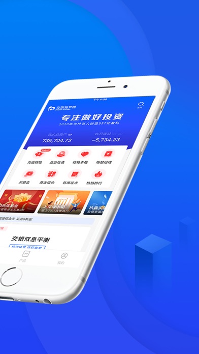 交银施罗德基金管理有限公司旗下官方投资平台交银基金,提供现金管理、净值查询、基金交易、费率优惠等强大功能,满足您全面的理财需求。 【特色功能】 1、省钱——充值超级现金宝,超宝购基0申购费 ! 2、省时——产品净值早知道、账户收益早了解! 3、省力——基金经理最新市场解读、理财资讯、投教陪伴,助您轻松购基! 【公司介绍】 交银施罗德基金管理有限公司成立于2005年8月,是首批银行系合资基金公司。股东分别为交通银行、施罗德投资集团、中集集团,控股股东为交通银行。自成立以来,股东和股权结构保持稳定,充分发挥中外股东的全球经验和资源优势,已建立了完善的组织架构和严谨的投资研究体系。 交银施罗德基金拥有中西合璧的投资理念,智领远航的投资策略,坚持“诚信做人,专业做事”的核心价值观,配合丰富的资产管理经验和有效的风控手段,将尽最大努力为投资人提供优质的服务。 公司成立至今多次荣获金牛基金公司,旗下产品更是多次囊获金牛基金、金基金等专业奖项,得到了广大投资人的认可和喜爱。 【联系我们】 官方网站:www.fund001.com 官方微信:微信公众号“交银投顾管家” 客服热线:400-700-50001、 新增设备权限管理的功能。  2、 新增客服咨询页面关于相册和相机权限调用的功能。 3、优化部分交互流程和样式。