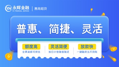金融是服务实体经济的一个非常重要的工具,实体经济的发展离不开金融的资金支持。 永辉金融核心产品——惠商超 放款快 一个手机就够用一键融资,当天到账 额度高 全渠道都能授信 灵活简便 随借随还,按日计息一个APP解决所有手续 利息低 月息低至1% 日息万分之三点三 无抵押 商业信用贷 永辉金融希望以金融的力量帮助每个有梦想的企业,以融促产,并积极为广大客户提供“普惠、便捷、优质”的金融产品。1、新增发票电子邮件接收
