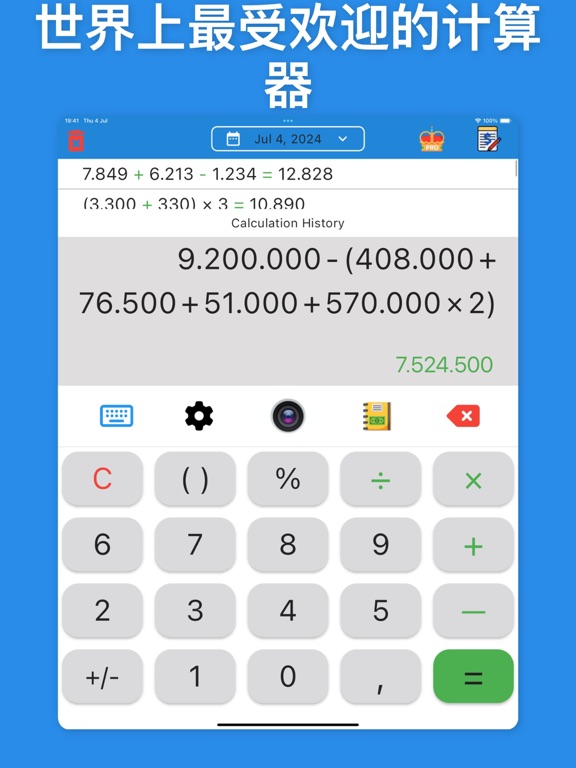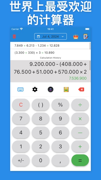 使用带历史记录和注释的计算器,解锁全新级别的便利性和效率。这款先进的计算器应用旨在满足您所有的计算需求,同时提供独特的功能来提高您的工作效率。 主要功能 1. 历史记录跟踪 再也不会忘记您的计算。我们的应用会保存您的计算历史记录,以便于参考、编辑和查看。一次轻松输入多个数字和计算,并可根据需要删除或编辑它们。 2. 费用注释 通过在计算中添加注释,详细记录您的财务状况。此功能非常适合预算和费用跟踪,可确保您在管理资金时不会错过任何细节。 3. 使用相机计算 使用设备的相机立即从照片中捕捉和计算数字。此功能非常适合快速准确地输入数据,可让您的计算更快、更高效。 4. 用户友好界面 享受简洁直观的界面,简化您的计算。无论您是在进行基本数学运算还是复杂的方程式计算,该应用程序都旨在让您的体验变得无缝衔接。 5. 多功能功能 从简单的算术到高级数学方程式,带历史记录和注释的计算器 - 支持广泛的功能。无论您是处理大量数字还是进行精确计算,此应用程序都是任何任务的完美伴侣。 无论您是管理预算、跟踪费用,还是只需要一个可靠的计算器,带历史记录和注释的计算器都是您的完美伴侣。 使用带历史记录和注释的计算器让您的计算更智能、更高效。立即下载并体验不同之处! 联系方式 + 支持电子邮件:support@wondapro.com + 使用条款:https://www.youpro.store/wondapro-terms-of-use + 隐私政策:https://www.youpro.store/wondapro-privacy-policy 付款和续订: * 确认购买后,将从您的 iTunes 帐户中扣除付款。订阅会自动续订,除非在当前期限结束前至少 24 小时关闭自动续订。 * 您的帐户将在当前期限结束前 24 小时内收取续订费用。升级世界上最受欢迎的现代多功能计算器应用程序的体验。