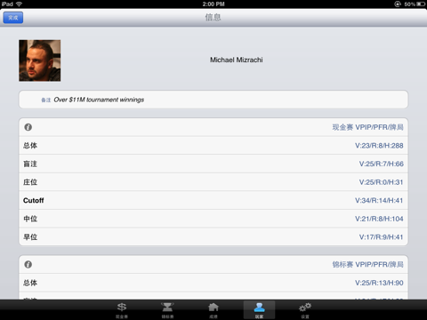 赌神管家帮您赢更多的钱!赌神管家帮您回答下面的问题: *我每小时打牌赚多少钱? *德州扑克,21点还是麻将更好运?现金赛还是锦标赛?有限还是无限限注? *我在赌场还是俱乐部发挥的更好? *周五还是周六对手更弱? *对手多还是少对我有利 ? *等等 赌神管家独一无二的功能包括: *赌神管家是世界上第一个纪录真人HUD的软件!您可以给您的对手们照相以及纪录他们打过的每一副牌,赌神管家会自动计算他们的技术统计数据,比如VPIP, C-Bet, Check-Raise和Aggression Factor等等。您可以从这些历史数据中总结出来他们的风格和破绽,让您比对手有更大的优势。 *备份数据到云,pokerincome.com。从任何的电脑或智能手机就能访问。即使您丢失或更换手机,数据仍旧安然无恙。 *通过脸书(facebook),微博(twiiter)和电子邮件分享牌局 这些功能都是其他模仿软件找不到的! 另外,您还可以: *从历史纪录中找出最赚钱的游戏,时间,地点和对手 *快速找到对手的风格,破绽甚至以前打过的每一手牌 *纪录收入和支出资金管理 *提高打牌技术 *从多个图表来分析战术 其他功能包括: *从不同的角度纪录现金赛和锦标赛的牌局(包括游戏格式,限注,地点,时间,利润,备注等等) *通过附带的计时器方便的纪录牌局的开始结束时间,休息时间和重新购买金额 *通过电子邮件输出数据到电脑上用其他软件分析,比如Excel *个性化管理:德州扑克,奥马哈,21点,麻将和您特有的游戏! 最后,您还可以在任何计算机和智能手机免费使用pokerincome.com!* Add monthly report by year. * Support large font. * Fixed rebuy screen. * Fixed iPhone X screen. * Fixed note screen.