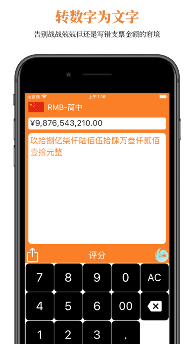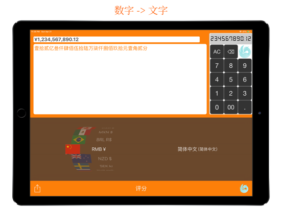 Cheque-kit - 支票宝 为您提供强大的数字转换至文字的功能 一app在手 填写支票易如反掌 特点: ◦ 支持多国货币及语言 ◦ 转换快而准确 ◦ 界面简洁鲜明 支持语言: ◦ 阿拉伯文 ◦ 简体中文 ◦ 繁体中文 ◦ 荷兰文 ◦ 英文 ◦ 法文 ◦ 德文 ◦ 印尼文 ◦ 意大利文 ◦ 日文 ◦ 韩文 ◦ 马来文 ◦ 葡萄牙文 ◦ 俄文 ◦ 瑞典文 ◦ 西班牙文 ◦ 泰文 ◦ 土耳其文 ◦ 越南文 支持货币: ◦ 澳元 ◦ 加元 ◦ 欧元 ◦ 英镑 ◦ 日圆 ◦ 港元 ◦ 墨西哥披索 ◦ 人民币 ◦ 新西兰元 ◦ 瑞典克朗 ◦ 俄罗斯卢布 ◦ 新加坡元 ◦ 瑞士法郎 ◦ 新台币 ◦ 美元 ▧ ▨ ▧ ▨ ▧ ▨ ▧ ▨ ▧ ▨ ▧ ▨ ▧ ▨ ▧ ▨ ▧ 关注我们的Twitter! ◦ https://twitter.com/appappworks 加入我们的Facebook专页! ◦ https://www.facebook.com/appappworks◦ 修复问题
