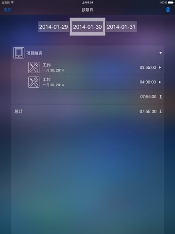 使用便捷、界面直观的应用,适合iPhone / iPad 和 iPod touch安装,用于管理您的时间。 想象一下: - 您在远离公司的地方,想很好地管理您的工作时间和任务,或者只是想让公司知道您的时间是怎样安排的……这样就不用等到返回公司之后再提交工作报告。有了 LIVE TIME,您就可以做到! - 您想管理您的工作活动和项目,跟踪您的时间安排(每天或每月),比如说跟踪每项工作活动的成本和收益。有了 LIVE TIME,您就可以做到! - 您总是记不住某项工作活动开始或者结束的时间,而 LIVE TIME 会帮您记住。 - 您想跟踪协作者或者工作团队的时间安排。有了 LIVE TIME,您就可以做到! 您可以通过简单、直观的用户界面输入时间(例如工作时间或出差时间),然后把它们和具体的项目/任务或者协作者连接起来。您输入的每一笔数据都可以和下列对象连接: - 某种类型的工作活动,以便清楚地了解需要跟踪时间安排的任务类型; - 某个项目/任务:您可以创建新的项目并和新的时间连接,然后输入项目成本以及每小时收益等数据; - 某个人:您可以输入您自己或者团队成员的时间。 您可以指定成本或每小时费用:每个项目/任务的成本和费用,或者对每项工作活动进行个人化设置,以便实时显示支出和收入。 最后,您还可以使用电子邮件发送 HTML 格式以及 CSV 格式(兼容 Microsoft Excel © 和所有常用的电子表格)的报告。应用还支持将没有发送成功的报告稍后重新发送。 应用还能提供已完成工作的统计数据,包括每天、每周、每月以及每年的数据等,以便监控成本和收入。 便捷、快速、直观……有了 LIVE TIME,您就可以做到!Apple 已更新此 App 以显示 Apple Watch App 图标。 Improvements
