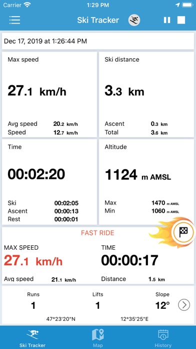 Ski Tracker Premium和Ski Tracks是适用于所有热爱雪和冬季运动的应用程序。对滑雪者和滑雪者有用。测量最大的滑雪速度,轨迹,距离,在地图上标记坡度,并提供冬季运动的完整统计信息。 这是Ski Tracker的高级版。它是无限的,包含一些额外的高级功能,并且没有广告 滑雪追踪器包括以下功能: -测量并记录最大滑雪速度 -测量滑雪道的距离,分为下坡滑雪和升降机 -时间措施,滑雪,升降机和休息 -在地图上标记您的滑雪道 -监视海平面以上的高度,并记录分钟。和最大价值观 -特殊功能“快速骑行”可单独测量最大速度,时间和与任何路段和时间的距离 -您可以全天记录和以后查看历史记录的所有数据和统计信息 -使用此应用,您可以拍摄带有数据的图片并与朋友分享, -我们的想法是-在一个应用程序中提供任何滑雪统计数据,地图,图形和其他数据 要使用此应用程序不需要移动漫游数据,只需GPS就足够了。请记住,GPS在建筑物内部的运行状况不佳,并且可能会生成错误的数据。有时在户外GPS可能需要更多时间来捕获良好的信号,尤其是在恶劣的天气条件下。 Snow Tracker应用程序还可用于训练越野滑雪,滑雪旅行,滑冰,单板滑雪,高山滑雪或其他在露天进行的运动。这个程序对有经验的专业人士很有用,但是新手滑雪者在使用它的同时也会有很多乐趣。 使用Ski Tracker Premium,您可以与朋友比较滑雪运动的结果,组织体育竞赛和其他形式的冬季竞技运动。 Ski Tracker Premium还可以帮助您在滑雪场上导航,寻找路线或与朋友接触。 您要去采尔马特(Zermatt)或夏慕尼(Chamonix)滑雪吗?也许是阿斯彭?检查天气并安装Ski Tracker应用程序。无论您身在何处,此应用程序肯定会给您带来很多乐趣和印象! 全球有超过3,000万名满意的用户安装了我们的应用程序-加入他们的行列,尽情玩乐! 信息 这个程序是不断发展和完善。我们仍在努力开发和改进它。如果您看到可以改进的地方,我们将非常感谢您发送电子邮件至help@examobile.pl。我们希望使我们的应用程序在Apple Store中成为最好的应用程序-谢谢。- 扩展会话共享地图和可定制的颜色主题 - 有关海拔高度来源的信息 - 黑色(AMOLED / OLED)颜色主题 - 课程的额外海拔和速度图表 - 捷克语、西班牙语、匈牙利语、葡萄牙语、瑞典语、斯洛伐克语和土耳其语翻译 - 添加了垂直距离、坡度单位百分比以及调整平均速度的功能 - 所有这些都可在设置中使用 - 错误修复和稳定性改进