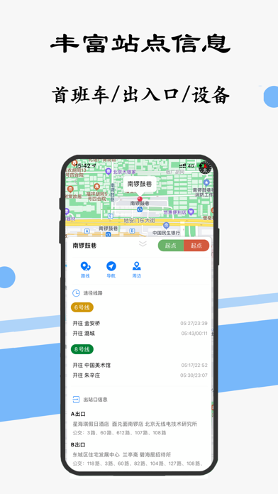 北京地铁通为了在北京上班、旅游出行便捷,而精心设计的一款精美实用的导航工具。它支持实时线路站点更新、出行线路规划、准确的下车到站提醒、及周边设施搜索等功能,它将是您出行的好帮手。 APP给用户带来许多特别实用、简洁、超级好用的功能。 【实时更新】随着地铁线路的不断开通,app支持线路实时更新,出现放心乘坐。 【线路规划-到站提醒】只要设置开始站点与结束站点,能快速精准的规划出最实惠最快的线路,能准确定位出到达的哪个站点,并在中转站或终点通过语音提醒用户下车。 【线路站点搜索】提供快速便捷的搜索最新线路及站点的功能 【站点详细信息】提供丰富的站点信息,包括首末班次时间、出入口周边信息及设施等,让您出入更方便。 【周边兴趣点搜索】根据站点,能搜索站点的周边生活、娱乐、医疗、学校、商城等设备环境,包括距离,电话地理位置等。 【智能导航】提供导航线路规划,以及全方面的智能导航,驾驶与步行,去哪里,一键导航,方便便捷。 北京地铁通希望能给北京生活的小伙们在出行的时候提供最好的帮助。优化下车提醒通知