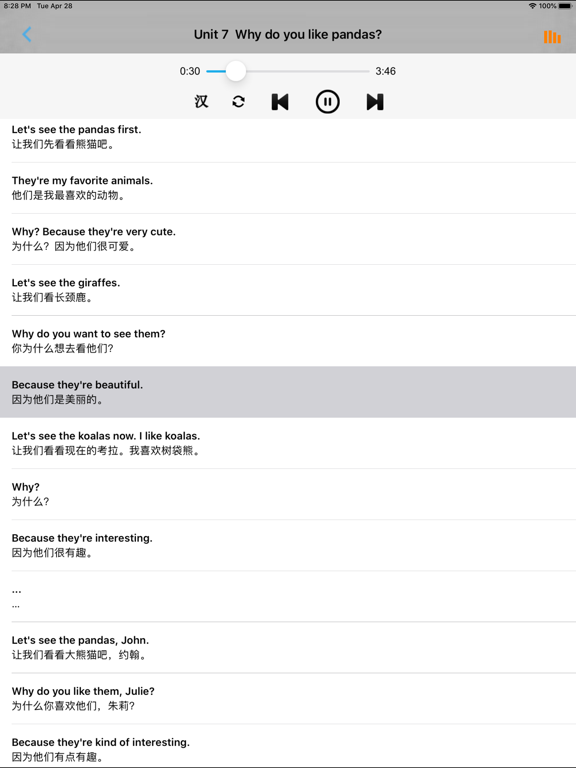 不单单是复读,【E-Learning】应用系列让您的iPad和iPhone变成学习机! 学生通过它随时随地完成课前预习、课后复习,学习能力更胜一筹! ***** 完全匹配教材,操作简便,哪里不会点哪里 ***** *根据教材配套,此应用为五四制鲁教版初中英语六年级上册、下册完全最新版。 *涵盖教材全部内容,让您全面掌握单词、短语、句子、语法及课文内容。 *全套原版录音和教材完全同步,助您成为英语大明星。 *操作简便、携带方便,从此抛弃磁带和光盘。 【E-Learning】应用系列同步教材制作,内容完全一致,您可以使用它来进行课文学习,播放教材配套音频,发音纯正地道,寓教于乐,让学习更高效和有趣! 此应用将成为孩子自学的专属外教,把家长从繁琐的辅导解答中解放出来!能点、能读、更能说,是学生的好老师、好家长! So easy!妈妈再也不用担心我的学习了,哪里不会点哪里! 功能特色 - 中英文双语对照,同步语音,准确清晰。 - 内容与录音质量放心,地道纯正、原汁源味。 - 语音播放灵活,快速翻页,目录跳转。 - 任意位置即点即学,复读模仿随时随地。 - 完全同步教材制作,内容完全一致。 - 支持后台播放,锁屏状态可随身听读。 - 界面简单大方,意图明了,功能实用,操作方便。 —【E-Learning】应用系列 — 适用于多种教学场景,您可以更加便捷地进行碎片化学习,期待您的使用! 致力于为中国K12教育提供最优秀的互联网教育应用软件! E-Learning乐园,伴随青少年健康快乐的成长! *****软件功能***** 1.通用应用,同时支持iPhone,iPod touch,iPad设备 2.可以自动顺序播放功能 3.可以自动记录播放位置,不用担心下次找不到听到哪 4.支持离线播放,即使不联网也一样听,到哪都不怕 5.支持手动拖拽前进、后退播放 6.在兼顾软件容量以及更多课程的情况下,我们最大限度保证音频的高质量,每个有声读物片段都是经过我们精选和亲测 7.最最重要的功能,可以拖动字幕定位,音频随之定位 本应用与《义务教育教科书五四制鲁教版初中英语六年级上册、下册》课本同步 新版目录(六年级上册): Unit 1 Good morning! Unit 2 What's this in English? Unit 3 What color is it? Unit 4 My name is Gina. Unit 5 This is my sister. Unit 6 Is this your pencil? Unit 7 Where's my schoolbag? Unit 8 Do you have a soccer ball? Unit 9 Do you like bananas? Unit 10 How much are these socks? 新版目录(六年级下册): Unit 1 When is your birthday? Unit 2 My favorite subject is science. Unit 3 Can you play the guitar? Unit 4 What time do you go to school? Unit 5 How do you get to school? Unit 6 Don't eat in class. Unit 7 Why do you like pandas? Unit 8 I'm watching TV. Unit 9 It's raining! Unit 10 Is there a post office near hear? - 支持iOS26系统; - 修改已知问题; - 优化系统。