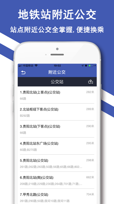 贵阳地铁通App,一款专业地铁出行智能助手。拥有贵阳最新地铁线路图,查询推荐最优换乘线路,最新站点信息全掌握(含周边)等地铁出行信息和功能。 ——【应用特色】—— 最新地铁线路:截止2024年,贵阳轨道交通共计开3条线路,后续APP线路将更根据实际情况更新。 最优换乘线路:时时监控地铁运行状态(通畅或拥堵),查询推荐最优换乘线路,以及乘坐的时间,票价,距离。 便捷线路分享:支持线路查询结果,文本/图片保存到本地,或分享到第三方平台。 线路/站点收藏:换乘线路查询结果以及站点收藏。 详细站点信息:站点首末班车时间,车站服务设施(卫生间和电梯等)、出入口信息等。 ——【所有线路】—— 涵盖地铁线路:1号线、2号线、3号线。 ——【联系我们】—— 贵阳地铁App,接入贵阳地铁信息中心,所有信息仅供参考,产品处于开发阶段,可能存在部分未完善细节,欢迎广大用户反馈使用问题和给我们建议,我们会努力做最好的贵阳地铁出行助力。 联系邮箱:app20190304@qq.com1、更新地铁线路信息,3号线地铁信息完善 2、升级用户隐私安全,透明权限获取 3、适配iOS各系统和iPhone各机型