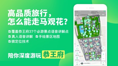 最专业最详尽的恭王府智能电子导游讲解 恭王府专业智能景点讲解语音导游。大牌真人主播语音讲解,手绘地图了解更加方便,通过GPS+微定位景区导览技术,在恭王府你可以实现走到哪里听到哪里,就像带着真人导游出行一样。 【主要功能】 * 覆盖恭王府最全的45个景点讲解点 * 提前下载, 离线播放, 在景区没有网络照样使用 * 大牌真人主播带您聆听颐和园背后的故事 * 自动GPS定位播放, 根据您所在的位置自动为您播放语音讲解 温馨提示】 自动导览会持续使用GPS定位服务,切换至后台播报时,仍会保持GPS连接。相比其它操作将会消耗更多的电量。 语音导览可以帮助用户在参观时获得智能景点的导游,切换至后台时,仍会继续播报。 【温馨提示】 语音导览可以帮助用户在参观特定的旅游景点时获得智能景点的游玩指引,切换至后台时,仍会继续播报。景区嘈杂博物馆内也需要安静,建议带上耳机使用,收听效果最佳。GPS在后台持续使用将会影响电池续航时间 【联系方式】 官网网站:www.sanmaoyou.com 联系电话:020-38815171 新浪微博:@三毛游 微信关注:官方微信请搜索关注“sanmaoyou888”:微信--添加朋友--按号码查找--输入“sanmaoyou888”--搜索添加即可微信客服号:gm-kefu1.一直被模仿,从未被超越 2.修复部分bug