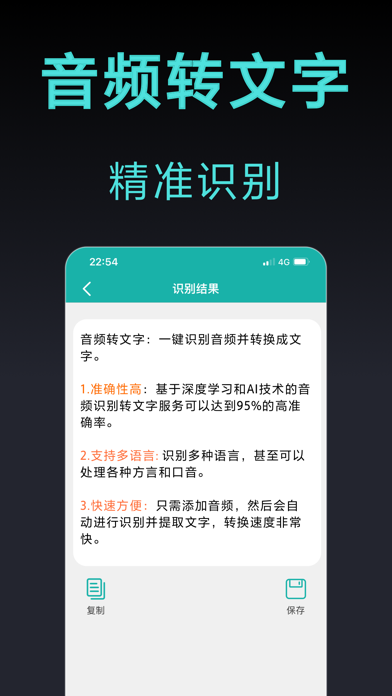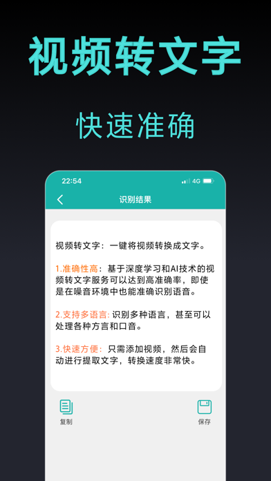 视频音频转文字采用先进的AI语音识别技术,能够快速提取视频和音频中的文字,是您进行短视频创作以及工作和学习的必备软件。软件具有以下功能: 1.视频转文字 精准提取视频中的文字,转换正确率在95%以上 2.音频转文字 一键提取音频中的文字,极速转化文字 3.录音转文字 录音并实时转写成文字 4. 文字转语音 输入文字转化成语音文件,声音自然媲美自然发声 5. 视频转音频 提取视频中的音频文件 6. 更多实用功能 视频去声音、音频拼接、音频剪辑 [隐私政策] https://avtotext.xyz/privacy.html [服务条款] https://avtotext.xyz/terms.html [联系我们] support@avtotext.xyz 【会员自动订阅服务说明】 1.订阅服务:分别为周会员(订阅周期为1周)、月会员(订阅周期为1个月)、年会员(订阅周期为1年) 2.付款:通过用户的iTunes账户扣款,用户确认购买后即付款 3.续订:苹果iTunes账户会在订阅到期前24小时内扣费,扣费成功后订阅周期顺延1个订阅周期 4.取消订阅:如需取消订阅,请在当前扣款周期前24小时操作,操作方法:点击手机设置->点击iTunes Store与App Store ->点击Apple ID,查看Apple ID -> 账户设置 -> 点击订阅,选择取消相应的订阅即可。视频转文字功能优化