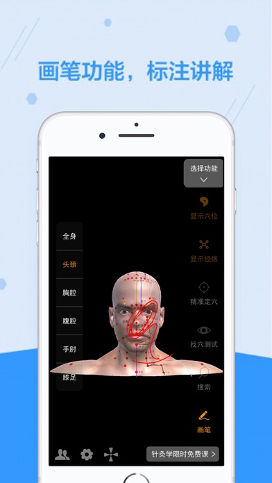 中医穴位实训是一款通过真实的三维效果展示人体穴位和经络的位置及定位、主治功能详细信息的应用,实现用户随时随地学穴位,练针灸。 真实的应用场景,耳目一新的学习体验,原来学习也可以这么新颖! 执业药师、执业医师,护士考试等海量题库全民共享,名师高清课程免费下载,在线答疑,无偿用! 【显示穴位、经络】展示人体所有经络及所有常用穴位,并可产看详细信息,全方位认知人体穴位。 【穴位搜索】通过穴位名称模糊搜索全身所有穴位,实现精确查询与定位,快速准确,一步到位。 【画笔功能】与其他用户分享讲解所学知识,在实际场景中注释,更加形象易懂。 【精准定穴】 对穴位进行反复定位训练,将穴位知识牢记于心。 【针灸学精品课】听取名师课程,深度全面学习针灸知识 如果您有与中医学为实训平台APP相关的问题,意见及建议,欢迎联系我们: 客服电话:400-0585-123 官方网站:http://www.baitongshiji.com 微信公众号:baitongshiji