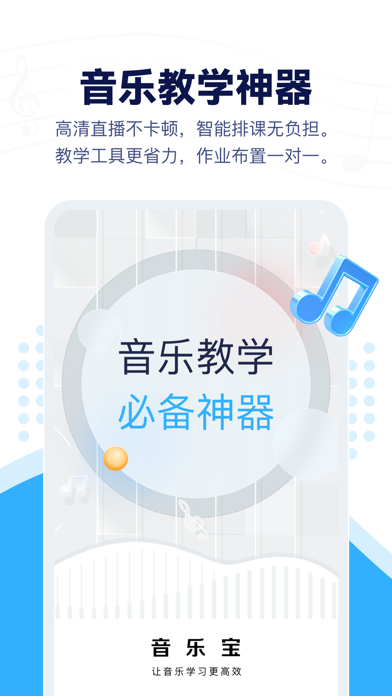 「音乐宝APP」是一款高效的在线音乐教学服务工具,为机构&个人快速开展多场景、多乐器的音乐教学业务提供一站式解决方案,助力其打造属于自己独立品牌的在线音乐教室,让音乐教学和管理更加简单高效 「主要功能」 - 音乐直播教室,还原真实练琴场景,支持多种音乐教学工具。 - 智能日历课表,支持多类型课程,排课有规划,无压力。 - 作业点评系统,课前、课后布置作业加强练习,形成教学闭环。 - 专属个人工作室,再小的组织,也值得被重视,为教培人量身设计。 - AI辅助工具,内核工具库,目前已开发AI陪练。 - 消息频道,社交、成员管理一体,让您的教学管理非常便捷。 「反馈」 为了您更好的体验。 - 有想法与建议,可以随时在App 内「消息-音乐宝助手」联系我们 - 我们的产品经理,随时等候您。APP名称修改