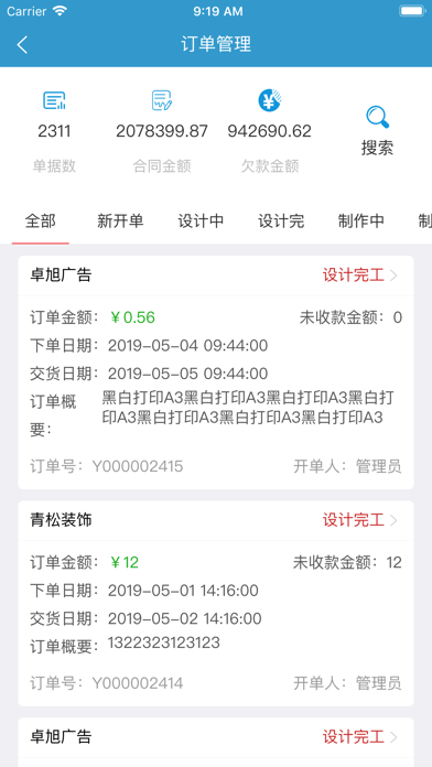 专业的广告公司记账软件,适用于广告装饰、标识标牌、有机工艺、喷绘、写真、条幅、雕刻、图文印刷等综合性广告设计加工制作企业。 重点解决客户信息管理、订单管理、外加工单管理、财务、库存耗材等广告制作领域中常见的管理难题。软件可实时显示单个订单制作状态和毛利润方便管理人员查看和跟进订单。修复修改外协单问题。