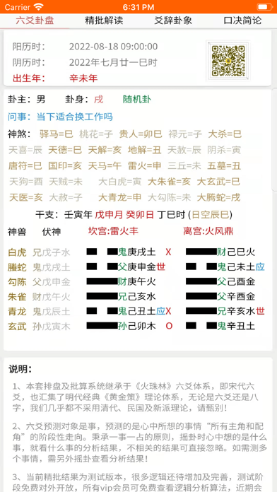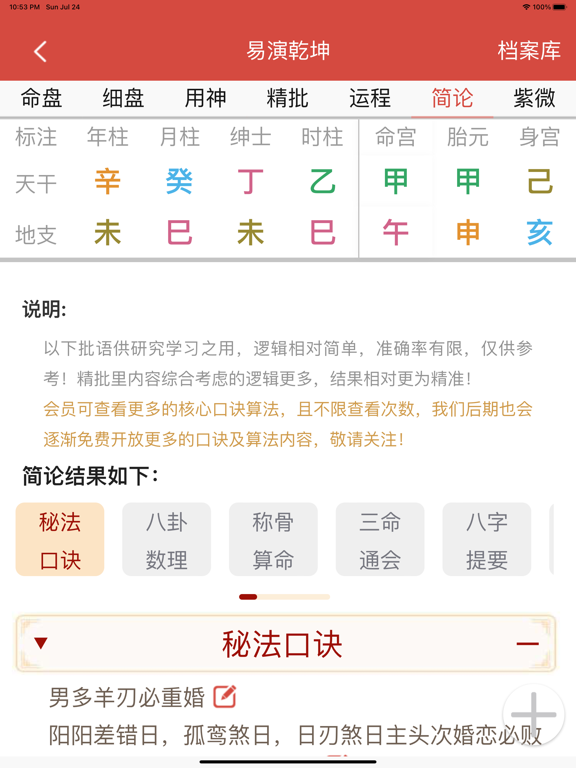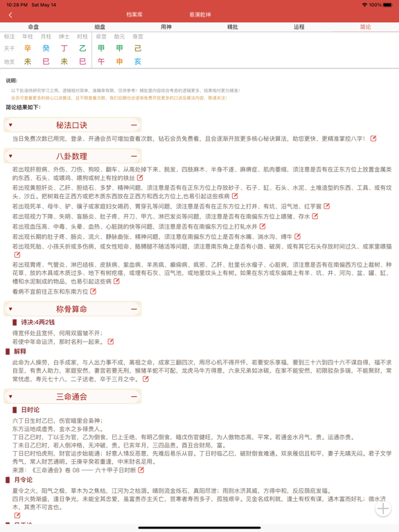 通过一些国学经典,结合大数据算法编写出的一套智能化工具,包含专业生辰八字排盘宝、批八字算命、紫微斗数终身详解、简批、精准八字合婚、七政四余排盘、星盘、免费起名、姓名测试打分、取名解名、十二星座、星座运势表、每日运势、六爻排盘、易经八卦、排卦算卦占卜、四柱排盘、八字反推、老黄历、万年历、测字、周公解梦、用神分析、格局层次评分、命格富贵打分、命盘神煞解读、古籍经典资料、称骨论命、姻缘运势测算、流年运程详批一生、趣味心理情感测试、评测及盲派串宫压运等。 另外涵括一批常用的生活实用工具,包含天气预报、每日简报、新闻头条、热门视频榜单、健康知识、历史上的今天等 软件以南传术数为基础,底层逻辑上承中华文化之源的河图洛书,下载流落民间的各类绝学及经典。融入了鬼谷禄命术、虚中命理、子平术、三命通会、梅花易数、玉照神应真经及民间各类绝学。程序把各类命理口诀及典籍的精髓、算法都注入了系统,每个逻辑都综合了多个点,真正做到了灵活便通。 软件推算的结果得到过大量的验证,准确性极高。我们为保障广大用户的利益及打造口碑,所有的付费功能都可以免费试测,在验证过去准确后再购买未来,真正让用户无后顾之忧!老黄历增加2025年节假日安排;修正流年星盘显示、支付通知异常等问题;修复部分已知问题;
