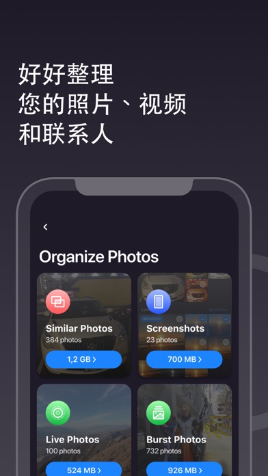 快速删除iPhone上无用的视频、图片和其他垃圾。只需点击几下即可清除垃圾,释放数千兆的空间。 这款iPhone清理工具可以搜索和删除重复照片、实时照片、连拍照片等等。您有可能保存太多张完全重复的照片,应用程序会重复删除类似的照片。 手机空间清理大师能够识别所有的垃圾,只需点击一下,它即可帮助您快速删除垃圾。 以下我们的应用程序能够做到的: –立即删除所有不需要的文件,清扫垃圾,清理手机空间 –搜索并删除截屏图片,进行垃圾清理 –搜索并删除相似视频 –按位置整理照片 –删除在特定位置拍摄的所有照片 –在简洁的界面中浏览照片 –将您的照片、视频和联系人隐藏在私密空间中 –搜索并删除重复的联系人 –合并联系人 –快速删除联系人 您也可以通过Siri或快捷指令启动手机清洁,更快删除不需要的文件! 注意:此应用程序无法清除手机内存。 您可以免费试用我们应用程序的所有功能。 随时进行会员资格订阅 • 您可以订阅手机清理大师以拥有权限使用我们的所有功能。 • 订阅可按周、年或一次性预付费计费,费率取决于订阅计划。 使用手机清理大师即表示您同意我们的隐私政策和使用条款: https://telegra.ph/Privacy-Policy-07-09-9 https://telegra.ph/Terms--Conditions-07-09Performance improvement and bug fixing