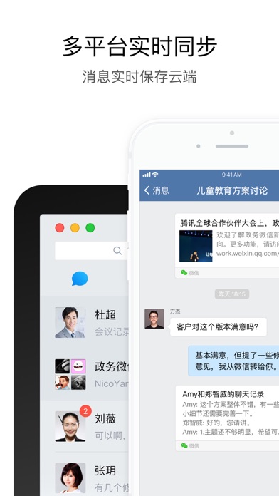 【安信】-安全可信的聊天工具 1. 熟悉的沟通体验,和同事一起高效聊工作 【和微信一样易用】与微信一致的沟通体验,简单易用 【信息沉淀】电脑与手机多平台消息实时同步,并云端保存 【高效沟通】发出的消息可以查看对方的已读未读状态,沟通更高效 【通讯录】支持批量导入通讯录并统一管理,找同事更准确方便 2. 丰富的API接口,满足个性化需求 【API接口】丰富的API接口,方便开发和接入更多应用 3. 集成办公协作功能,提高沟通效率 【企业邮箱】在这里收发工作邮件,还可一键转发邮件到群聊,基于邮件快速沟通 4.强大的管理能力,为管理员提升效率 【通讯录管理】快速批量导入,统一管理;同事信息准确完善,方便查阅 【丰富的配置】个性化定义显示的员工资料,可隐藏部门或成员,也可设置查看通讯录的权限1.修复iOS在客户端内发送手机拍摄的照片很模糊的问题 2.修复iOS端预约会议,设置会议周期性的时候报错的问题 3.修复iOS端切换成“英文”后,Mac端的消息推送变成了英文的问题 4.修复iOS端因UIwebview上架被驳回的问题