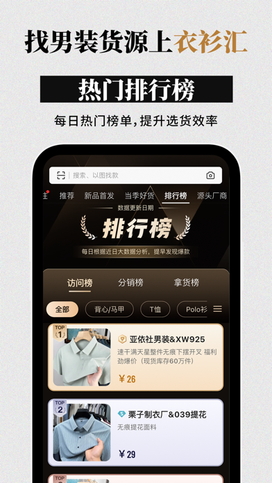 当前位置:首页苹果软件购物 → 衣衫汇男装网批 服装货源批发平台一批厂家采购选货拿货分销市场