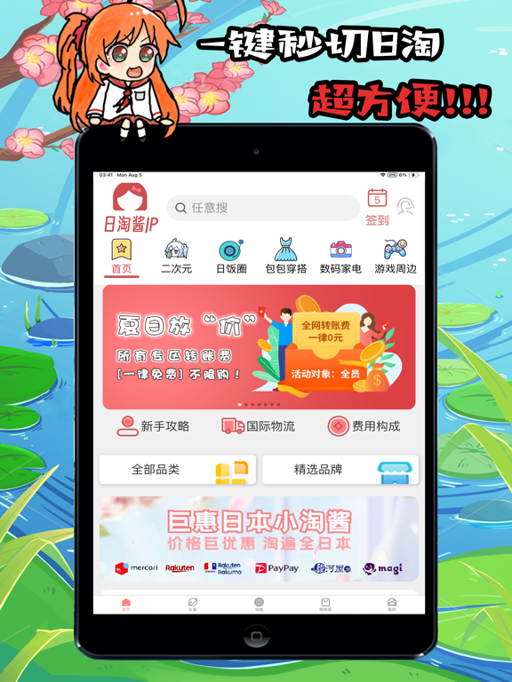 日淘酱JP是日淘酱升级版,这里日淘购物更流畅,更优惠! 优惠1:享受2KG以内免费打包; 优惠2:享受转账费0元,服务费0元; 优惠3:直购专区商品满500元-40元 更多优惠,可到日淘酱JP查看哦! 日淘酱JP整合了日本大多数(二手)电子商务平台,包括日本煤炉(Mercari)、日本雅虎(Yahoo)、楽天(Rakuten)、Paypay和(骏河屋)Surugaya 、Magi、 日淘酱JP购物仅需4个步骤 1.下订您喜欢的日本商品。 2.待日本卖家将商品发送至日淘酱JP在日本仓库。 3.您的商品到达日淘酱仓JP库后,您可以为您的商品创建一个国际包裹,并支付国际邮费,之后Ebuyjp将会为您寄送您的包裹至您填写的地址。 4.等待你的包裹送达并接收。 祝您购物愉快!1、优化部分页面