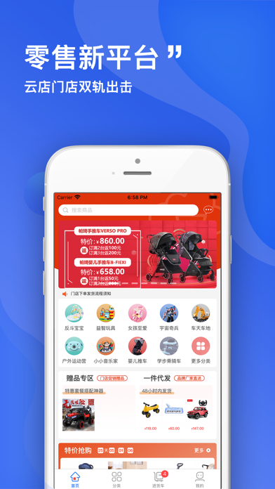 【全球好玩具】 甄选全球好玩具,品牌直供,为您提供婴幼童玩具、积木拼接、益智、动漫、遥控模型、DIY、毛绒等玩具。 【热卖】 为您提供各电商平台玩具销售爆款,国际国内玩具大牌新品推荐,流量商品等全方位推送。 【门店网店】 专为门店打造的商城网店,品类错开,千店千面,家居、美妆、零食等商品一件代发,无需囤货,引流、维系、变现等营销工具高效实用。1.新增物料采购功能模块; 2.修复已知BUG;