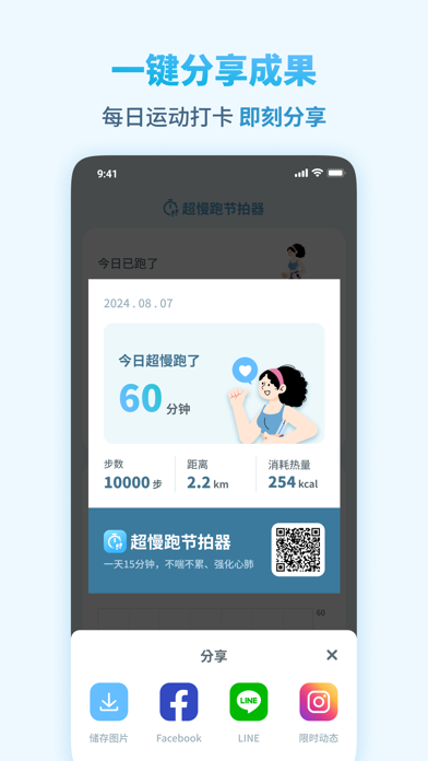 专为超慢跑爱好者设计的节拍器运动App,提供免费无广告的超慢跑体验!无论你是新手还是有经验的跑者,都可以享受低强度的有氧运动,找到适合你的节奏,帮助有效燃脂、提升心肺耐力,开启健康新生活! 【什么是超慢跑?】 超慢跑是近年来在日本流行的低强度有氧运动,通过稳定的步频帮助燃烧脂肪、增强心肺功能,特别适合初学者、老年人或需要减少膝盖压力的人群。超慢跑逐渐受到全球运动爱好者的关注,因为它能让身体保持在最大心率的60%-70%,即 Zone 2 区间,有助于高效燃脂、瘦身,并提升有氧耐力。 【超慢跑的好处有哪些?】 懒人福音:超慢跑不费力、不气喘,还能轻松减脂瘦身。 肌肉不酸痛:低强度运动避免乳酸堆积,跑后不会感到肌肉酸痛。 受伤风险低:适合初学者和老年人,安全的入门运动选择。 提升心肺和肌肉耐力:促进血液循环,增强心肺功能,同时提高肌肉耐力。 强化线粒体:超慢跑有助于促进线粒体增生,提升能量代谢,延缓细胞衰老。 【功能亮点】 个性化步频推荐:根据你的年龄、性别和跑步经验,自动推荐最合适的超慢跑步频,帮你燃烧卡路里的同时降低受伤风险。 互动式训练体验:多种节拍音频提示,搭配趣味跑步动画,帮你实时调整步伐,轻松完成有趣的跑步训练。 运动数据追踪:详细记录跑步时长、步频、速度和卡路里消耗,并通过图表直观展示,助你清晰掌握运动进度。 团队连胜机制:邀请亲朋好友加入你的超慢跑团队,一起完成每周连胜,通过互相鼓励和监督,养成超慢跑的好习惯! 马上开启你的超慢跑之旅吧!每天15分钟,跟随180步频轻松完成超慢跑,不累不喘、增强心肺,享受无压力的健康跑步体验。立即下载,开启超慢跑健康新篇章!修修修,小队伍的邀请功能出了点小问题哦!Kevin 卷起袖子修好啦~ 想邀请伙伴的朋友们赶紧来更新!