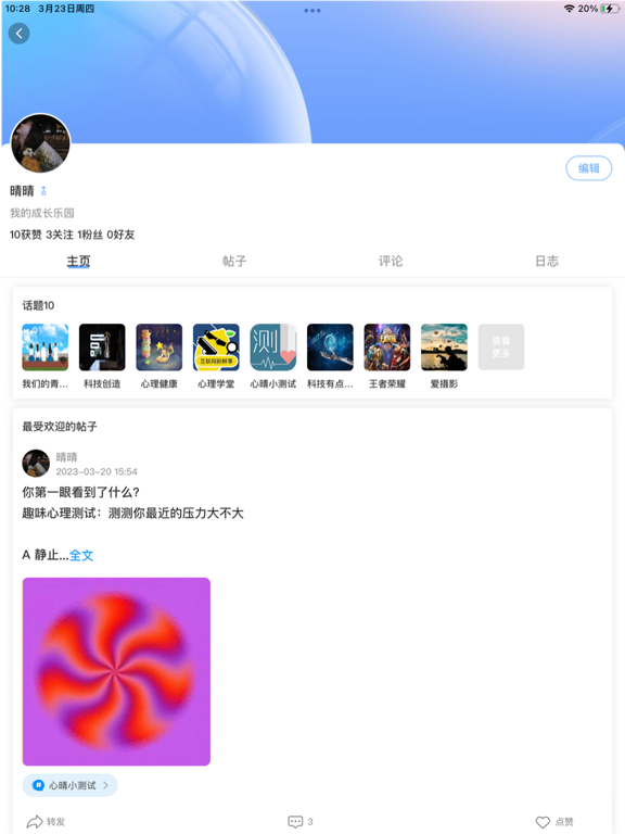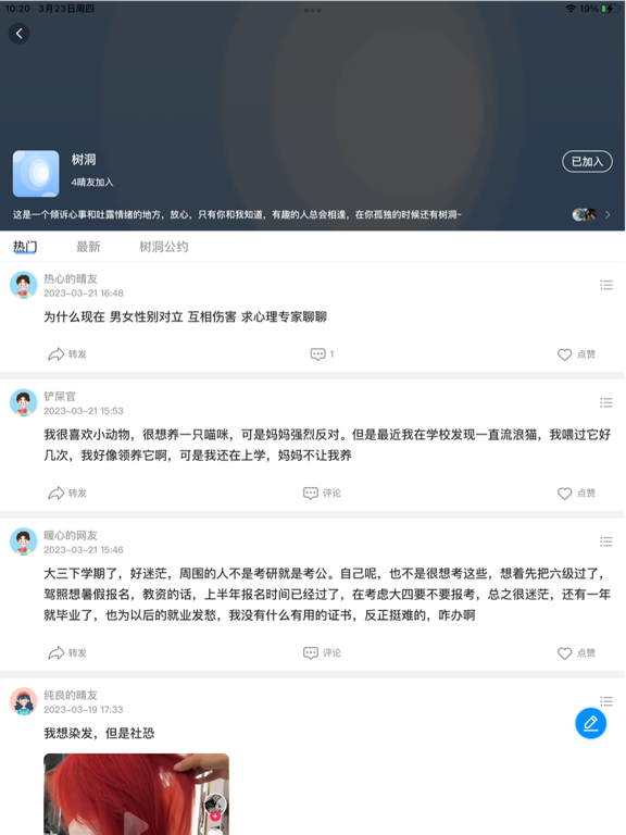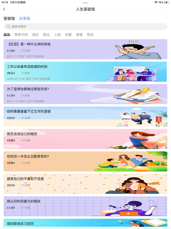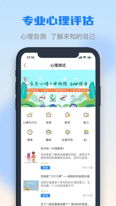 乐天心晴,我的成长乐园。在问答馆里,无论您是工作学习中遇到困难,还是生活中面临的困扰,都可以在这里找到答案,这里还有超级有趣的兴趣社区,有趣的不只是帖子,还有脑洞神评论,您会找到兴趣相投的人。您可以在这里释放工作生活中的情绪,得到正确的压力缓解疏导,我们有专业的心理咨询团队陪伴你成长,丰富体验,传递生活的勇气和力量。修复已知问题。