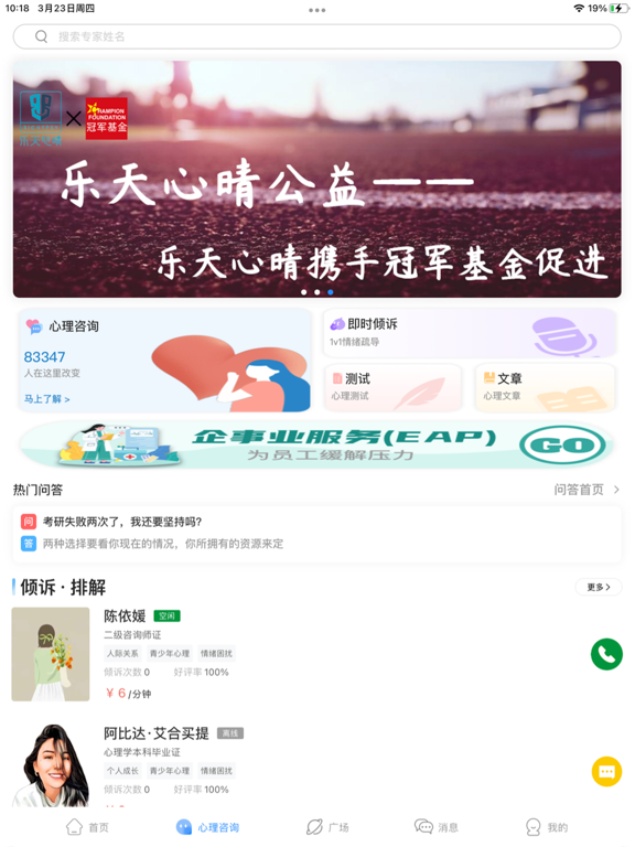 当前位置:首页苹果软件健康健美 → 乐天心晴-专业心理咨询平台