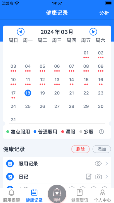服药精灵是一款健康习惯管理app,我们提供了如下功能: 【服用提醒】设置服药、喝水、日常活动等不同种类的服用提醒。可拍照记录药品说明、处方、医嘱并智能识别药品名称,适合各种药物的规格和剂量。自定义避孕药周期等提醒间隔周期,可以设置多重、多种形式的服用提醒,由手机或“智能药盒”或多终端(手机+药盒+…)提醒用户,并自动上传数据,不错过任何提醒。 【健康记录】记录血压、血糖、体重等各类身体状况,并与服用记录、日历等其他健康记录一起汇总分析,生成健康分析报告,方便回顾。可以远程查看服药历史记录,当数据异常时,及时提醒用户及其关联亲友。 【健康资讯】知名三甲医院医生撰写的母婴、乳腺、糖尿病、康复等各类科普文章,对各种常见健康问题提供专业指导。 该指导仅供参考,在做出任何医疗决定之前,请征求医生建议。 【药盒管理】“智能药盒”必须连接网络才能将服药记录上传至云端,更好的实现数据管理与分析服药。用户可以通过服药精灵提供的配网功能,将“智能药盒”连接入网,并设置服用提醒时间与发送文字信息。 【积分商城】通过签到、健康记录、推荐等完成每日任务,可兑换精美好礼。 如需要帮助或获取更多信息,请关注或联系: 应用内反馈:[个人中心]---[我要反馈] 微博:服药精灵 用户交流群:755516315 微信公众号:服药精灵1.下架苹果内购; 2.修复已知bug;