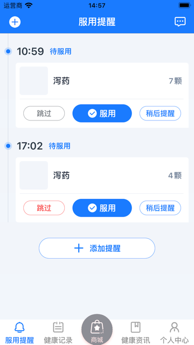 当前位置:首页苹果软件健康健美 → 服药精灵-喝水吃药打卡提醒