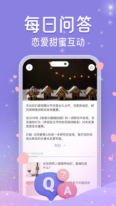 定制恋爱关系方案,28天专属亲密计划, 异地恋,也能甜蜜火恋,确保恋爱长久的同时,还能感情升温!是否处在感情破裂地带,告别冷战,学习恋爱甜蜜互动,轻松延长热恋期,缓和伴侣关系! 日常记录恋爱甜事,提供情绪价值远程守护爱情,每天懂Ta多一点! 练爱星球是一款专注于亲密关系维护,教我们表达爱与学习更好的爱的一款app,通过我们的每日问题功能,你每天都可以与伴侣一起回答一个有趣的问题,每个问题都有一个基于研究的事实,为什么回答它对你们的关系有帮助。这里有丰富的线上问题和各种有趣的情侣测验主题,助力你们更了解彼此关系里的优势和可成长的空间。双方都参与回答问题后,你们可以比较彼此的答案,互相交流并解决矛盾,从而增进双方感情。 相爱容易,相处难。练爱星球助力有趣的你可爱的Ta爱情长跑。无论你们是处于谈恋爱阶段、恋爱ing、异地恋中,婚姻中...都不影响在心动日常中记录每一天的恋爱时光。 这里不仅有爱情,还有亲情,友情,师生情等各种情感问答游戏哦。 -每日问题:基于心理研究,由我们顶级伴侣治疗师和学者精心创建的情感问题,助力你们解锁恋爱密码,助力爱情长跑,给彼此稳定的安全感。 -情侣测试:多样测验主题,多维度亲密关系,轻松了解彼此优势,帮助你们更好的成长,get到你心中Ta的所想所答,让恋爱生活更多乐趣。 -爱情游戏:你真的了解你的伴侣吗?通过我们的爱情游戏测测你多了解你的ta!此时正处于谈恋爱ing,对有趣、深思熟虑,又或是彻头彻尾的情侣恋爱聊天是怎么回答的呢? -专家建议:科学测验帮你们更了解彼此,陪伴你的成长,给您传递生活的勇气和力量,助你经营好关系的同时成为更好的自己。 -情感问题包:这里关于两性关系主题,为情感关系里程碑做好准备,包括从同居到计划要宝宝~每个练习都有一个讨论点和有用的答案提示哦,助力恩爱时光永长久。 -情侣探讨:和其他情侣一起探讨恋爱生活,共同探讨从恋爱、结婚、生子的疑惑。 通过练爱星球,让交流有趣更有爱。 * 自动续订说明: 连续包月会员:按月自动续费,每月缴纳一次,价格¥48 连续包年会员:按年自动续费,每年缴纳一次,价格¥128 -付款:将在确认购买时从iTunes账户中扣除。 -取消订阅:如需取消订阅,请在当前订阅周期到期前24小时以前,在iOS设备“设置”-“iTunes Store 与 App Store”-选择“Apple ID”-点击“查看Apple ID”-在账户设置页面点击“订阅”-取消订阅,到期前24小时内取消,将会收取订阅费用。 -续费:苹果iTunes账户会在到期前24小时内扣费,扣费成功后订阅周期顺眼一个订阅周期。 -付款:将在确认购买时从iTunes账户中扣除 相关协议: 隐私政策:https://h5.navolove.com/tool/privacy/ios.html 会员服务协议:https://h5.navolove.com/tool/privacy/userService.html 自动订阅条款:https://h5.navolove.com/tool/privacy/auto_subscribe.html欢迎来到练爱星球,回答问题,让感情快速升温! -优化使用体验 -问题修复&性能提升