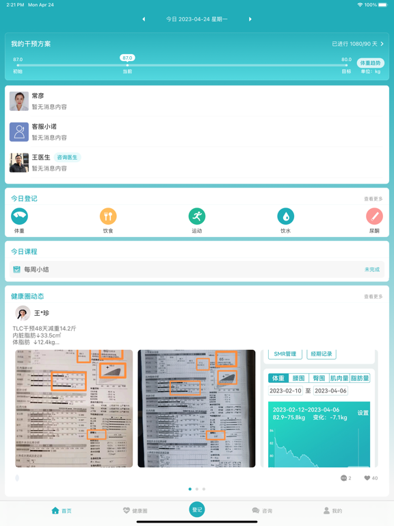 《体重管家》是由诺特健康为超重/肥胖人群倾情打造的全方位全流程的智能化体重管理手机软件,采用国际先进的体重管理方法,由专业医生、营养师团队在线提供360度健康咨询服务,集OIP-智能体重管理方案、OIP强化体重管理解决方案、健康日记、在线教育、实时互动、个性化饮食/运动/心理指导方案、社交圈为一体的在线生活方式干预系统,辅以海量减重问题库、食物选择库、卡路里计算器、营养评估等智能工具,同时 借助于苹果"健康"原生App以及“运动与健身”服务来记录您的每日步数等,是您减重必备的掌上宝典。 管辖权声明: 该应用程序是针对中国大陆使用。 我们在中华人民共和国(“中国”)境内本APP进行控制和运营;除非另有说明,否则本APP上所展示的材料仅用于在中国境内推广产品和服务之目的。我们并未对本APP上的任何材料在任何其他地方的适用性或适宜性作出任何声明。如果您选择从其他地方访问本APP,则您有责任遵守当地的适用法律。 本产品提供的信息,不能用于临床诊断、治疗药物调整的依据,如果用户有需要,可咨询医生获取帮助。1.新增体温登记 2.修复部分已知问题