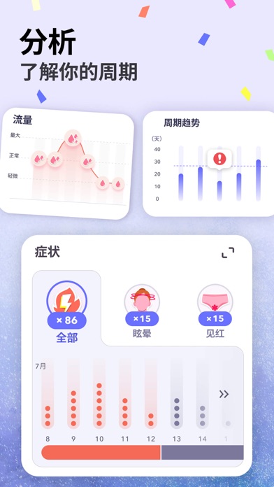 欢迎您使用小月历!这是一款简约时尚、实用便捷的应用程序,致力于帮助女性用户跟踪生理期及排卵。 在准确的月经跟踪功能支持下,您可以轻松把握生理周期,并在月经到来之前提前接收到提醒。与此同时,确定排卵日和受孕窗口将不再困难。您也可以实现对经前期综合征相关症状的深入了解,或是监测自身的激素健康状况——总而言之,有了这款功能全面的应用程序,您的一切需求都将得到满足。 我们重视您的健康,尊重您经期的独特性。因此,我们为您设计了一系列精美的界面主题——从舒缓心情的水彩主题、色调和谐的渐变主题,到典雅优美的花卉主题,您可以根据个人喜好随时更换界面风格。 您的数据,由您做主。下载之后无需注册登录即可使用我们的应用程序,所有数据都将存储在本地。应用本身也支持设置密码锁,确保您的隐私免遭窥探。请您放心,我们会始终将您的数据安全放在首位。 主要功能: 月经、排卵预测及提醒 - 进行排卵周期和月经记录,更好了解自身生理阶段模式; - 确定排卵日和最佳受孕期时间,利于备孕规划; - 自定义月经、排卵提醒的时间和频率,获取未来经期、排卵预测提醒; - 根据预测结果合理规划生活、工作和社交活动。 症状、心情跟踪 - 在经期日历上记录并跟踪生理周期中的不同症状、心情; - 深入探索自身的身体和情绪状态,关注整体身心健康状况; - 记录经期日历,在需要时可与您的医生共享经期健康相关信息; - 培养健康的生活习惯,在应用程序内持续记录体重变化并进行饮水打卡。 月经周期趋势分析 - 掌握月经周期历史中的整体周期、经期长度变化; - 借由直观的图表、报告了解自身的月经出血量、经期症状模式; - 基于分析结果,科学调整生活方式。 自定义主题 - 根据个人偏好,从丰富多彩的主题库中任意选择心仪的主题; - 切换应用程序界面,充分享受新鲜与愉悦的使用体验。 数据安全及隐私 - 无需创建账户即可使用; - 存储所有数据至本地设备; - 设置密码进一步确保数据安全; - 轻松转移和恢复数据,防止数据丢失。 小月历将作为值得您信任的经期伙伴,协助您自信、顺利地度过生活中的每一个阶段。 快来下载我们的应用程序,即刻开启一段前所未有的经期管理愉悦体验!We've updated our app to make it better for you. Start enjoying a smoother, more exciting app experience!