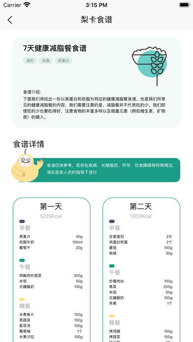 -----梨卡相机核心功能------ 【热量相机】 通过人工智能技术,实现拍照就能识别食物种类,进一步识别食物质量,计算食物热量;让姐妹们吃饭不用再带秤啦~饮食记录不再难,营养含量计算不再麻烦啦~ 【智能营养师】 AIGC技术支持的智能营养师,可以24h实时回答你的任何营养相关问题~还能陪你聊天哦~ 不仅如此,小梨还会再每次饮食后给你提出饮食建议,让你的饮食习惯更均衡~ 【热量管理】 根据你的饮食情况和身体数据,计算热量缺口,方便进行饮食管理,肉肉变少,心情变好~ 【食物查询】 超过150万种食物的超大食物库,营养元素和卡路里清晰可见,吃的明白,瘦的放心~ 【健康周报】 每周多维度地评价你的饮食情况,为你分析营养摄入数据~ 还提供Net易云风的海报分享哦~ 减肥不是生活的唯一 美是不可量化的 健康饮食,营养均衡 才是我们身体健康发展的先决条件 不可盲目地进行减肥 要量力而行 减肥没有所谓的标准而言 养成良好的生活习惯 也能使自己更加地美丽 接纳自己才是最重要哒~修复一些已知问题