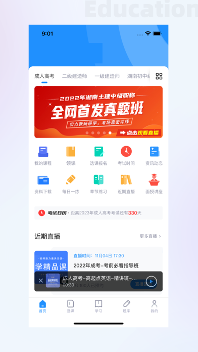 执课是一款针对成人职业考试的一站式个性化学习服务平台,汇集了专业讲师,精心打造直录播,智能题库等学习产品。内容优化,提升用户体验