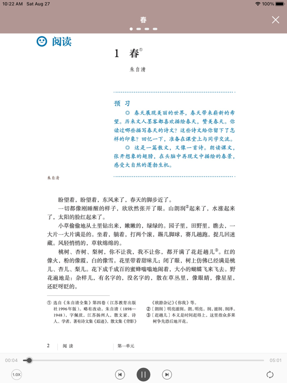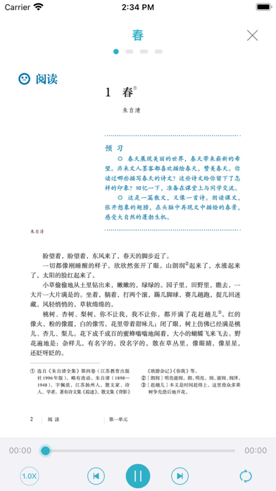 初中语文人教版课本朗读包含七年级语文,八年级语文,九年级语文上册和下册语文的六册所有课本内容。专业播音员诵读,多听专业诵读,助您练好普通话!新增初中语文全六册专业诵读; 支持高清电子课本; 优化播放器; 支持暗黑模式。
