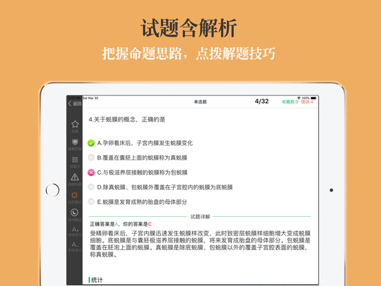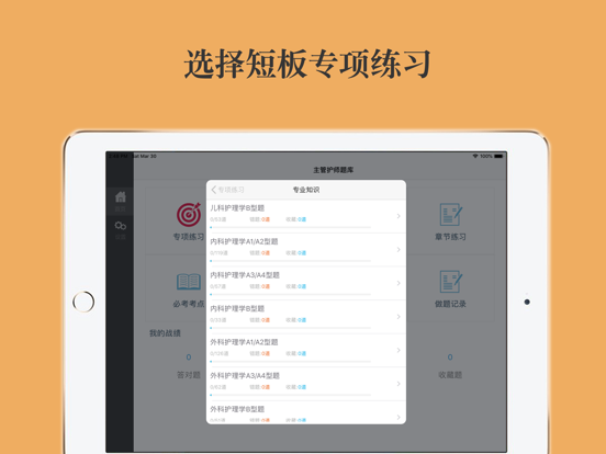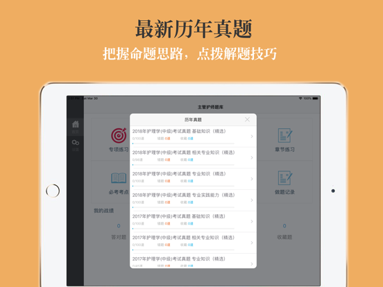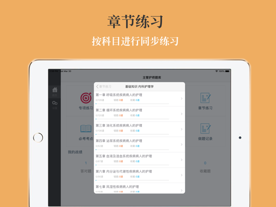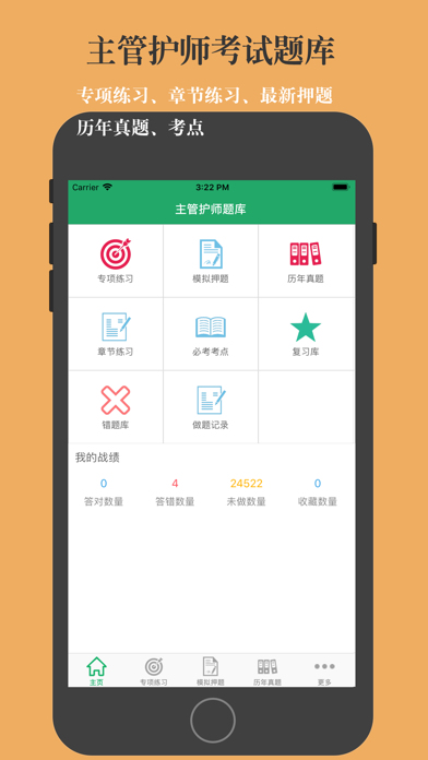 本软件为主管护师考试的软件,精心准备了2025年最新考试题库。 适合护理学、内科护理、外科护理、妇产科护理、儿科护理、社区护理专业。(共计40000多道)分为不同题型,并有答案解析。以及高频考点(2500个考点),为考试的提供了充分的复习准备,可随时随地学习练习,有效帮助顺利通过考试,学习知识通过考试必备神器! 初级护师版本下载地址:https://itunes.apple.com/cn/app/chu-ji-hu-shi-kao-shi-ti-ku/id938020489?mt=8 【功能介绍】 1、 专项练习:最新章节专项考题,并有答案解析。 2、章节练习:章节同步练习习题。 3、模拟押题:最新模拟押题,含解析,检测复习成果。 4、历年真题:精选最新历年真题含解析。 5、必考考点:高频考点必背知识点,按章节分类。 6、错题库:可自动加练习过程中错题加入收藏,以便反复练习。 7、收藏夹:可在练习过程中自行收录题目或考点到收藏夹,形成自己的小题库,针对性练习,提高通过率。 8、安装后可离线浏览,不用联网也可以浏览,速度快,无广告。 9、支持同时在iPad/iphone/itouch等多种设备中安装。 10、定期更新题库。 题库介绍 2022年护理学(中级)考试真题 基础知识 2021年护理学(中级)考试真题 基础知识 2022年护理学(中级)考试真题 相关专业知识 2021年护理学(中级)考试真题 相关专业知识 2022年护理学(中级)考试真题 专业知识 2021年护理学(中级)考试真题 专业知识 2022年护理学(中级)考试真题 专业实践能力 2021年护理学(中级)考试真题 专业实践能力 2020年护理学(中级)考试真题 基础知识 2020年护理学(中级)考试真题 相关专业知识 2020年护理学(中级)考试真题 专业知识 2020年护理学(中级)考试真题 专业实践能力 2019年护理学(中级)考试真题 基础知识 2019年护理学(中级)考试真题 相关专业知识 2019年护理学(中级)考试真题 专业知识 2019年护理学(中级)考试真题 专业实践能力 ... 专项练习 内科护理学A1/A2型题 内科护理学B型题 外科护理学A1/A2型题 外科护理学B型题 妇产科护理学A1/A2型题 妇产科护理学B型题 儿科护理学A1型题 儿科护理学B型题 护理健康教育学A1型题 护理健康教育学B型题 医院感染护理学A1型题 医院感染护理学B型题 护理管理学A1型题 护理管理学B型题 内科护理学A1/A2型题 内科护理学A3/A4型题 内科护理学B型题 外科护理学A1/A2型题 外科护理学A3/A4型题 外科护理学B型题 妇产科护理学A1/A2型题 妇产科护理学A3/A4型题 妇产科护理学B型题 儿科护理学A1/A2型题 儿科护理学A3/A4型题 社区护理学A1/A2型题 社区护理学A3/A4型题 社区护理学B型题 儿科护理学B型题 内科护理学A1/A2型题 内科护理学A3/A4型题 内科护理学B型题 外科护理学A1/A2型题 外科护理学A3/A4型题 外科护理学B型题 妇产科护理学A1/A2型题 妇产科护理学A3/A4型题 妇产科护理学B型题 儿科护理学A1/A2型题 儿科护理学A3/A4型题 儿科护理学B型题 社区护理学A1/A2型题 社区护理学A3/A4型题 社区护理学B型题 第一篇 内科护理学 第一章呼吸系统疾病病人的护理 第二章循环系统疾病病人的护理 第三章消化系统疾病病人的护理 第四章泌尿系统疾病病人的护理 第五章血液及造血系统疾病病人的护理 第六章内分泌与代谢性疾病病人的护理 第七章风湿性疾病病人的护理 第八章理化因素所致疾病病人的护理 第九章传染病病人的护理 第十章神经系统疾病病人的护理 第二篇 外科护理学 第一章水、电解质、酸碱代谢失调病人的护理 第二章外科休克病人的护理 第三章多器官功能障碍综合征病人的护理 第四章麻醉病人的护理 第五章复苏 第六章重症病人的护理 第七章外科围手术期护理 第八章疼痛病人的护理 第九章营养支持病人的护理 第十章外科感染病人的护理 第十一章损伤病人的护理 第十二章器官移植病人的护理 第十三章肿瘤病人的护理 第十四章颈部疾病病人的护理 第十五章乳房疾病病人的护理 第十六章腹外疝病人的护理 第十七章急性化脓性腹膜炎病人的护理 第十八章腹部损伤病人的护理 第十九章胃、十二指肠疾病病人的护理 第二十章肠疾病病人的护理 第二十一章直肠肛管疾病病人的护理 第二十二章门静脉高压症病人的护理 第二十三章肝脏疾病病人的护理 第二十四章胆道疾病病人的护理 第二十五章胰腺疾病病人的护理 第二十六章外科急腹症病人的护理 第二十七章周围血管疾病病人的护理 第二十八章颅内压增高病人的护理 第二十九章脑损伤病人的护理 第三十章常见颅脑疾病病人的护理 第三十一章胸部损伤病人的护理 第三十二章脓胸病人的护理 第三十三章肺部疾病外科治疗病人的护理 第三十四章食管癌病人的护理 第三十五章心脏疾病病人的护理 第三十六章泌尿、男性生殖系统疾病的主要症状和检查 第三十七章泌尿系损伤病人的护理 第三十八章泌尿系结石病人的护理 第三十九章泌尿、男生殖系结核病人的护理 第四十章泌尿系梗阻病人的护理 第四十一章泌尿、男性生殖系统肿瘤病人的护理 第四十二章男性性功能障碍、节育者的护理 第四十三章肾上腺疾病外科治疗病人的护理 第四十四章骨科病人的一般护理 第四十五章骨与关节损伤病人的护理 第四十六章常见骨关节感染病人的护理 第四十七章腰腿痛及颈肩痛病人的护理 第四十八章骨肿瘤病人的护理 第三篇 妇产科护理学 第一章女性生殖系统解剖与生理 第二章妊娠期妇女的护理 第
