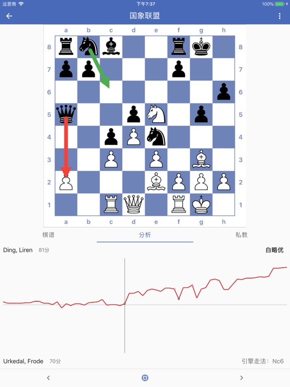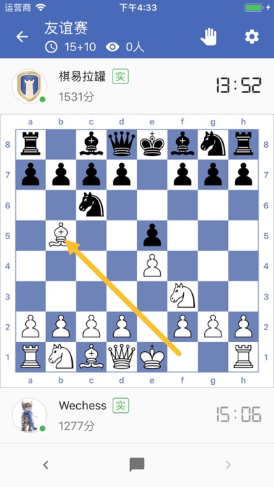 国内专业国际象棋平台,国象爱好者与职业棋手们的集合地。 200万+注册用户,100万+战术训练题,1000万+国际大师名局棋谱,精彩不断的官方赛事,AI数据分析,开局+残局百科,局面搜索引擎,助你快速提高棋力! 功能特色: 1.匹配系统,一键寻找水平接近的对手,进行棋逢对手的博弈。 2.积分系统,采用国际棋联等级分计算公式,让积分说明硬实力。 3.分析系统,应用鳕鱼16神经网络引擎,步步为您分析,助您进步。 4.数据私教,开启大数据学棋新方式,提高您的训练效率。 5.系统习题,众多难度不等的战术题等您挑战,助您的水平稳步提升。 6.好友系统,完善的社交资料与机制,下棋交友两不误,结识更多新棋友。 7.观战系统,高手下棋一键观战,与棋友们一起探讨国际象棋的乐趣。 8.学习工具,电脑对手、开局树、局面搜索、大师数据库、记录本、自定义棋盘、棋钟等,多种特色功能等你体验。修复iOS12相关崩溃