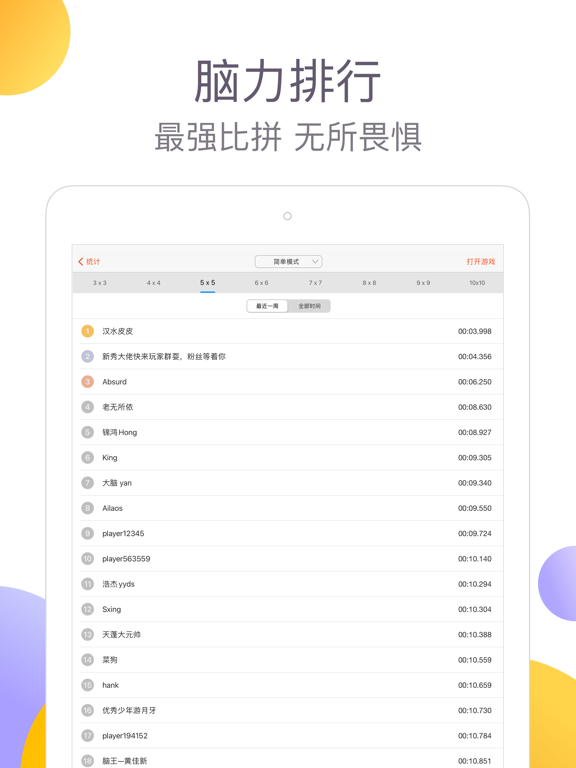 舒尔特方格是全世界范围内最简单、最有效也是最科学的注意力训练方法。 项目特色: 1. 丰富的游戏模式:简单、普通、打乱、盲玩; 2. 递进的难度阶级:3 ~ 10阶; 3. 多彩的主题皮肤:清新模式、深色模式; 4. 专业的 数据分析 和 成绩排行 功能。 每天坚持 舒尔特方格 练习,可以显著提高大脑的注意力和快速阅读能力。- 新增训练数据分析; - 新增全球成绩排行; - 优化部分游戏体验。