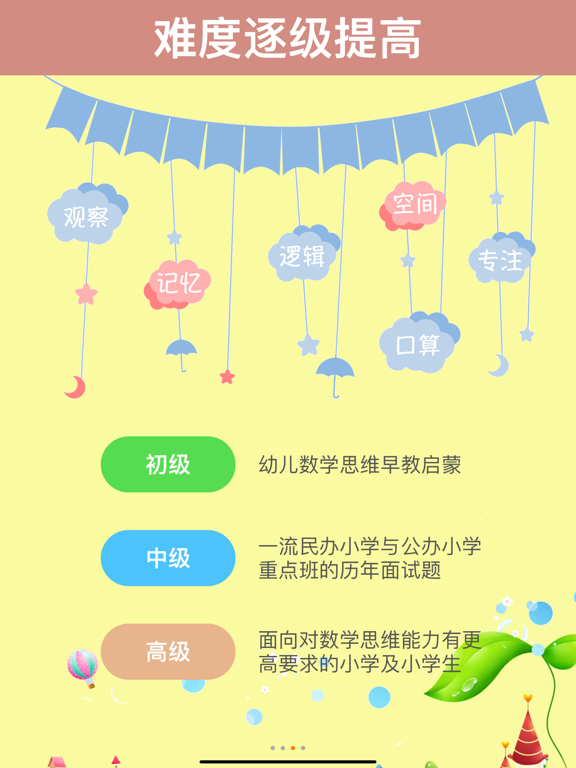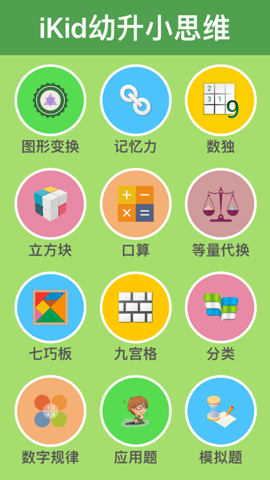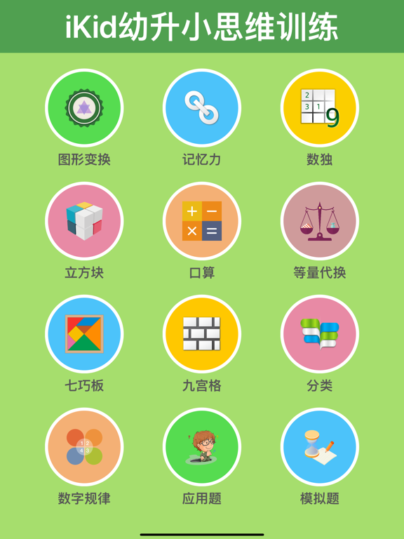 大量图形与数字游戏,锻炼儿童数学逻辑思维,帮助幼儿园小朋友轻松准备幼小衔接与幼升小面试,开发小学生智力。精选历年入学面试中的典型真题,涵盖沪宁杭京广深等城市的知名小学(上海:上海实验、世外、盛大、逸夫、七外、协和、星河湾、正达、上外附小、上外双语、明珠等;南京:南外仙林、玄外、郑外、秦外、鼓楼实验等;杭州:崇文实验、育才附小、世外等;北京:建华实验、海淀外国语、人大附小、北大附小、实验二小、北京小学、中关村、北外附校、海淀实验、朝阳外国语等;广东:华师附小、东风东路、中大附小、广外附小、广大附小、华美英语、深圳实验、东华等),致力于全面提高儿童思维能力: ● 观察力 ● 记忆力 ● 专注力 ● 逻辑思维能力 ● 空间想象能力 ● 口算能力(加减法) 3-6岁学龄前宝宝和6-8岁小学生爱玩的数学思维游戏盒子:借鉴逻辑狗思维训练方式,培养孩子自主学习能力(不含任何广告),让孩子爱上数学。全国各地的小朋友均可受益。 资深育儿专家与一线优秀教师合作,专为3-8岁儿童设计的幼小衔接数学思维训练,难度分级: ● 初级:幼儿数学思维启蒙与早教益智游戏(免费) ● 中级:优质民办小学与公办小学重点班的历年面试题 ● 高级:面向对数学思维能力有更高要求的小学及小学生 训练关卡持续扩充/更新: ● 早期低价购买的关卡升级到新版本后,可免费获得该关卡新增加的数学思维训练 ● VIP用户可永久解锁现有全部关卡(100+知识点,220+思维训练关卡,3500+趣味图形与数字练习),并且永久免费获得将来新增的所有关卡:一次购买,无后续费用,只需升级App版本即可 提高儿童数学思维能力,众多家长的放心选择。用户评价: ● “无意中下载,没想到这么好玩有趣,非常适合幼升小的小朋友玩,可以煅练数学逻辑思维及记忆,最好的是没有广告弹出” ● “对孩子的逻辑思维特别有帮助,从易到难,循序渐进,孩子容易入手,很感兴趣” ● “这款幼升小儿童思维训练APP很棒,应该早点下载给孩子练习的” ● “在玩游戏的同时提高数学逻辑思维能力,家长育儿的好帮手,非常实用,值得推荐” ● “幼升小题型齐全,挺实用的数学思维游戏,题目生动有趣” ● “孩子很喜欢,题目类型丰富,非常适合幼小衔接的小朋友,比都都数学更实用” ● “好有趣的幼升小数学游戏盒子,宝宝很喜欢,好玩又能锻炼数学逻辑思维,值得推荐” ● “不错,里面的题型正好适合民办小学的入学要求” ● “很赞的一款幼升小App,锻炼孩子数学逻辑思维” ● “界面简单明了,没有乱七八糟的广告干扰” ● “无意中下载的,很锻炼孩子。孩子最近上数学思维课,明显比以前反应快,记忆力好” ● “题目有一定难度,对幼小衔接数学学习有帮助” ● “小朋友说非常感谢这个下载的思维训练游戏,这个游戏让我能够学到很多知识,我很喜欢” 适用对象:幼儿园小朋友和小学生。 客户支持: 微信公众号:iKid思维 如果您在使用中遇到问题,请向公众号发送消息和页面截屏。更新训练关卡。